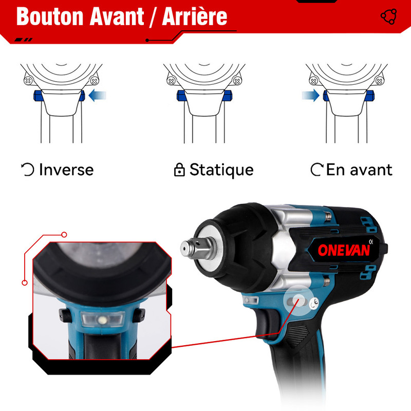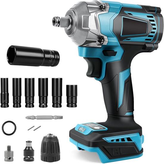 m et moteur sans balais】Les visseuses à percussion offrent un couple maximal de 1800 N. Clé à choc électrique sans fil Boulonneuse Brushless 1300N Pour Voiture... 【2 VITESSES ET 4 VITESSES】Cette visseuse à percussion à batterie fonctionne avec une protection de verrouillage, un mode avant et un mode arrière, tous deux avec 4 vitesses réglables. - Clé électrique puissante, polyvalente, puissante et puissante. Clé à Chocs Sans Fil 1/2 Pouce 1800N.M Clé à Chocs Sans Fil, 1/2 Pouce Boulonneuse A Choc, Compatible Clé A Choc Sans Fil L'utilisation de moteurs sans balais améliore considérablement les performances du produit et réduit l'apparition d'étincelles. Spécifications: Couleur : bleu. m pour desserrer ou serrer facilement différents types de vis ou d'écrous, par exemple pour le démontage des pneus de voiture, le montage de meubles, l'installation d'échafaudages, dans le garage, les projets de bricolage, etc. 【Lumière de travail LED】La lumière LED intégrée de la visseuse à percussion sans fil aide à améliorer la visibilité dans des conditions de faible luminosité, pas peur de l'utiliser la nuit, ce qui en fait un outil pratique dans les petites pièces et les endroits sombres. 【Design ergonomique】La visseuse à percussion sans fil ne pèse que 1,8 kg, son design compact et son moteur supérieur minimisent la fatigue lors de la plupart des tâches quotidiennes de serrage ou de desserrage des écrous. Fréquence de frappe : 0 - 7700 ipm Couple maximal : 1800 n. - Arbre en acier tungstène, haute dureté, résistance à l'usure. Makita DTW 300 Z Clé à choc sans fil 18 V 330 Nm 1/2'' Brushless clé... Sans vitesse de charge : 0 - 7200 tr/min. Il est fabriqué en acier au tungstène, haute dureté, point de fusion élevé, durable et résistant aux chutes pour répondre aux exigences du travail industriel. Clé à Chocs sans Fil Brushless 700Nm Boulonneuse à Choc Electrique