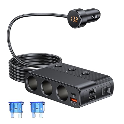 Il est particulièrement adapté à l'alimentation d'appareils standard 12 V/24 V pour allume-cigare dans des environnements éloignés ou extérieurs. Répartiteur 7 en 1 pour allume-cigare : ce produit combine 3 prises allume-cigare avec 4 ports de chargement USB, dotés de 4 interrupteurs indépendants et d'un... Charge rapide super quadruple port : Notre prise USB 12 V est désormais dotée d'un design à quatre ports, comprenant 1 port PD 30 W + 1 port PD 36 W + 2 ports QC 18 W, permettant de charger simultanément quatre appareils avec une puissance de sortie totale pouvant atteindre 80 W., Compatible avec PD 2., 0, QC 2., 0/1., 0 et tous les autres protocoles pour une charge ultra-rapide sur tous les appareils. Câble flexible réglable de 3 mètres : cet adaptateur secteur 12 V pour voiture est équipé d'un câble de 3 mètres pour une portée étendue ou une utilisation en extérieur. Câble 3m écran LED Voltmètre Interrupteurs OOWOLF Répartiteur Allume-Cigare 12 V/24 V - Adaptateur De Chargeur De Prise Allume Cigare Double Les prises éclairées en bleu avec interrupteurs indépendants permettent de contrôler individuellement la sortie de chaque prise, éliminant ainsi les branchements et débranchements inutiles. Il utilise des cosses à anneau en cuivre pur avec un calibre de fil de 16 AWG. Prise allume-cigare 100 W : dispose de 3 prises allume-cigare avec une puissance de sortie totale pouvant atteindre 100 W. Affichage LED de la tension : le chargeur USB 12 V est équipé d'un voltmètre LED bleu qui surveille automatiquement la batterie et le système électrique de votre véhicule, affichant les mesures de tension en temps réel. De plus, l'interrupteur d'alimentation principal 12 V permet de contrôler tous les appareils d'une simple pression, protégeant ainsi efficacement la durée de vie de la batterie de votre véhicule. Il comprend une fonction d'affichage de la tension et est livré avec un câble extra-long de 3 mètres, ce qui en fait le compagnon idéal pour les longs trajets, les aventures en camping et les trajets quotidiens. Le fil rouge se connecte à la source d'alimentation positive (+) du véhicule, tandis que le fil noir se connecte à la borne négative (-), garantissant un fonctionnement simple et intuitif. LEX Prise de cigarette de voiture Répartiteur de prise allume-cigare de... Répartiteur 7 en 1 pour allume-cigare : ce produit combine 3 prises allume-cigare avec 4 ports de chargement USB, dotés de 4 interrupteurs indépendants et d'un interrupteur principal. La structure renforcée garantit un fonctionnement stable dans toutes les conditions météorologiques. Allume-cigare d'auto 3-en-1 avec ports USB 3,0 et PD, répartiteur d'alimentation 128 W 12–24 V avec affichage de tension et commutateur indépendant | Best Buy Canada