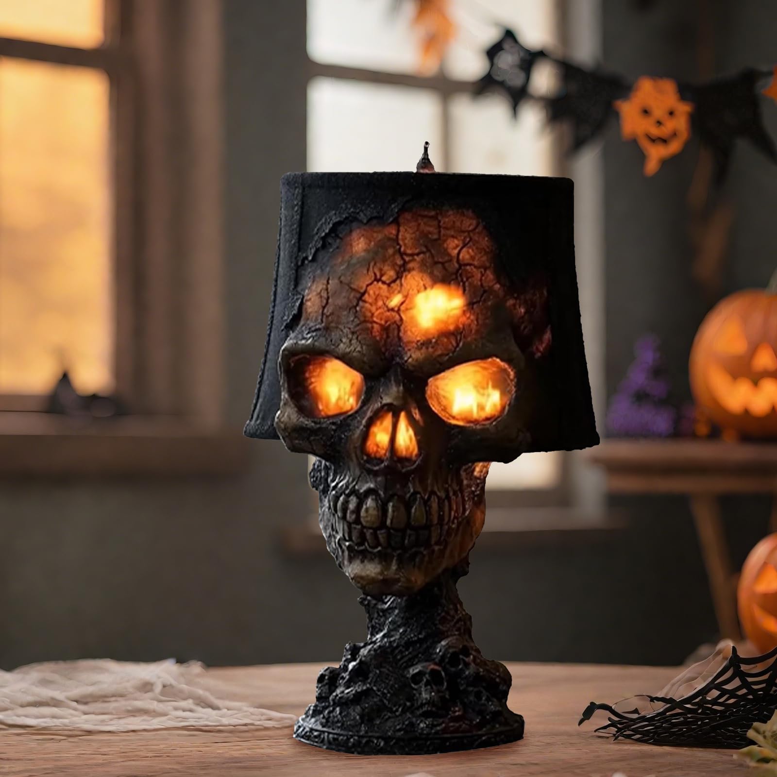 Elle crée une atmosphère effrayante et s'intègre facilement à des décorations de style crâne ou gothique, rendant toute activité de plein air inoubliable Deco Gothique Lampe LED De Cimetière Halloween Tête De Skull Décoration Colorée Clignotante En Plastique Accessoire De Décor De Fête Lampe De Table Tête De Mort Gothique Créez une ambiance inoubliable et captivante pour votre maison ou votre bureau XIT - Lampe tête de mort Crâne Lumière Crâne Lampe Décorative Résine Squelette Veilleuse Tenture... Cadeau pour la famille, les amis et les collègues Lampe Squelette : Vous pouvez également la placer où vous le souhaitez. Lampe de Table Tête de Mort : Créez une ambiance tamisée avec cette lampe tête de mort 3D au design sophistiqué pour Halloween. Son design texturé met en valeur le style décoratif du crâne et crée une lueur enchanteresse la nuit. YNDD Lampe de Chevet Tactile, Lampe de Table avec 2 Ports... Lampe de Table Halloween : Fabriquée à partir de matériaux durables et d'une construction robuste pour les décorations d'Halloween. Son design texturé met en valeur le style décoratif du crâne et crée une lueur enchanteresse la nuit. Sublimez vos scènes de morts-vivants avec un thème d'horreur. KEM - Lampe tête de mort Crâne Lumière Crâne Lampe Décorative Résine Squelette Veilleuse Tenture Son design original apporte de la joie et confère une touche unique aux pièces Son éclairage chaleureux diffuse la luminosité idéale pour créer une atmosphère inquiétante sans être trop intense.