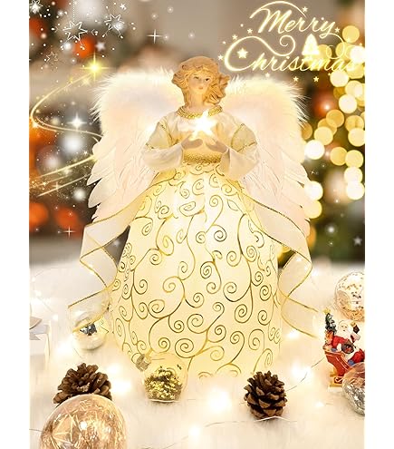 Spécification: Styles disponibles : Argent A: Silver Lady Angel + Lumière Jaune Chaude (1 Mode) Or A : Golden Lady Angel + Lumière Jaune Chaude (1 Mode) Argent B : Ange À Motif Argenté + Lumière Jaune Chaude (1 Mode) Or B : Ange À Motif Doré + Lumière Colorée (1 Mode) Matériel: tissu Taille: 32*17 cm Source de lumière : lumière jaune chaude ou lumière colorée (1 mode) Batterie : 2 * AA (non incluses) Liste de colisage: 1 * Étoile supérieure d'arbre d'ange (piles non incluses) Il vous suffit de placer la décoration de sapin de noël en forme d'ange. Créez facilement des décorations de vacances sans aucun fil requis. Ambiance de noël souhaitée, rendez votre maison pleine d'ambiance festive. 32cm Ange de Noel pour Sapin, Ange Sapin de Noel avec Lumière LED Rendez votre sapin de noël plus chaud et plus éblouissant en hiver. La jupe délicate et la structure fluide du ruban, au fur et à mesure que la lumière brille, augmentent la beauté globale de la décoration de noël. Design Exquis]--- Notre ange pour cime de sapin de noël lumineuse est bien faite et magnifiquement conçue et sera une excellente décoration pour votre sapin... Décorer ensemble pour noël. Notre pointe de sapin ange lumineuse est magnifiquement conçue avec un visage d'ange réaliste et deviendra une pièce maîtresse accrocheuse lorsqu'elle sera placée au sommet de votre sapin de noël, créant ainsi une superbe décoration de vacances., Fonctionnalité: 1., Cimier D'arbre de Noël en Forme D'ange: La taille de ce cimier ange de noel pour sapin est de 32 cm * 17 cm, ce qui est parfait pour toutes les différentes tailles d'arbres de noël. Au sommet de l'arbre, puis ajustez facilement à l'angle parfait. Décoration Ange 32cm Cimier De Sapin De Noël Ange Cimier De Sapin De Noël - Ange Arbre De Noël Topper Décoration D Cimier Ange De Noël Cimier Ange Sapin Noël Facile à Installer: Vous pouvez facilement installer le noël arbre topper décoration en insérant simplement le haut du sapin de Noël sous le christmas tree top... 【Cadeau Parfait】--- Cette décoration de sapin de noël est non seulement un choix parfait pour la décoration de noël, mais aussi de noël exquis pour la famille, les amis et les proches, créant une atmosphère romantique et chaleureuse pour vos fêtes et votre maison.