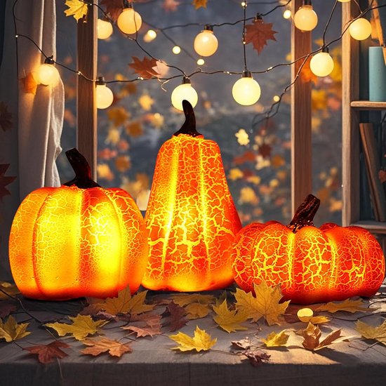 GOEDCH Décoration de citrouille d'automne avec lumière LED : 3 pièces citrouille décorative d'Halloween, lampe de citrouille LED, lanterne citrouille décorative d'automne, lumière de décoration d'automne pour décoration de table, Thanksgiving, Halloween, jardin Caractéristiques du produit : ✅ Lot de 3 pièces – Ce lot de 3 citrouilles décoratives d'Halloween est adapté à différentes scènes. Décoration de lanterne citrouille d'automne : cette décoration de citrouille d'automne avec lumière LED se compose de trois lanternes citrouille de formes différentes, fabriquées à la main avec des détails exquis et sont idéales comme décoration de table, bibliothèque ou décoration suspendue. Caractéristiques du produit : 🔹 Matériau : résine 🔹 Dimensions : 9,5 x 6 cm, 7 x 5 cm, 6 x 6,5 cm (diamètre x hauteur) 🔹 Couleur de la lumière : jaune chaud 🔹 Couleur : orange Contenu de l'emballage : 3 tailles différentes - Décoration de citrouille d'automne avec lumière LED Instructions : Ouvrir le compartiment à piles sur la partie inférieure de la lampe de citrouille LED décorative., Insérez la pile. ✅ Matériaux sûrs et respectueux de l'environnement : fabriqués à partir de matériaux de haute qualité, sûrs, fiables et réutilisables. Matériaux de haute qualité : les 3 citrouilles décoratives d'Halloween sont fabriquées en résine de haute qualité, durable, sûre et respectueuse de l'environnement. Elle est particulièrement adaptée pour les décorations de Thanksgiving et d'Halloween. Lot 3 Citrouilles LED Décoration De Citrouille En Céramique - 2x Pièces - 18 Cm - Lanterne De Décoration Lanterne Citrouille Automne Citrouille décorative avec chapeau de 45cm 💡 Créez une atmosphère – La lumière chaude crée une ambiance festive. Forme de citrouille artificielle : le design réaliste de la lanterne citrouille décorative d'automne crée une ambiance festive. Elle est adaptée à un usage familial, de sorte que même les enfants et les animaux domestiques peuvent profiter de la décoration de Noël en toute sécurité. Déco d'Intérieur Citrouille Lumineuse - Lampe Murale LED Économe Toutes... Remarque : La décoration d'automne en forme de citrouille avec lumière LED doit être protégée des rayons du soleil prolongés. Utilisation polyvalente : la décoration de citrouille d'automne avec lumière LED convient à de nombreuses occasions : elle peut être utilisée comme décoration de table, décoration de rebord de fenêtre, veilleuse dans la chambre ou décoration de jardin. La lampe de citrouille LED décorative a une surface lisse et sans bavures et les coins arrondis empêchent les rayures. Parfaites pour la décoration d'automne, le jardin, la terrasse et bien d'autres pièces de la maison.