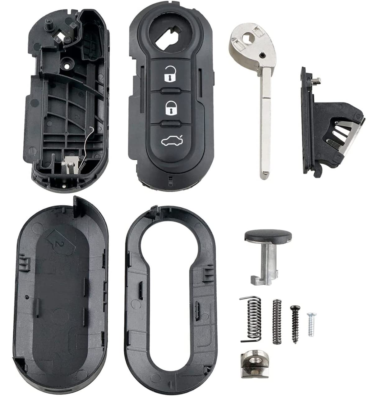 Convient pour Fiat: Doblo, 500, 500L, Ducato, Punto, Bravo, Panda Résistant à l'usure et aux frottements, agréable au toucher, les vis sont solidement fixées, n'altèrent pas le signal d'origine et offrent une longue durée de vie Veuillez prêter attention à la forme de la clé Résistant à l'usure et aux frottements La vis fixe plus fermement et n'affecte pas le signal d'origine Aucune programmation requise ; remplacez simplement votre appareil électronique existant par cette coque de clé. Coque de clés pour Fiat Doblo - Comptoir de l'Utilitaire Remplacement : Coque de clé pour Peugeot Boxer, pour Ford KA, pour Vauxhall Combo, pour Iveco Daily, pour Iveco Eurocargo, pour Jumper Remplacer pour Citroën Fiat Ducato Remplacer pour Citroën Nemo Remplacer pour Citroën le relais Remplacer pour Ford KA Remplacer pour Iveco Daily Remplacer pour Iveco Eurocargo Remplacer pour Jumper 1., Dévissez votre coque de clé existante 2., retirez le module intérieur 3., Déplacez le module dans la nouvelle coque de clé Caractéristiques: La coque du porte-clés est fabriquée en plastique de haute qualité, difficile à casser et durable. KUZEY HIRDAVAT Fiat Doblo 500 500x 500l Ducato Citreön Jumpy Peugeot... Haute sensibilité pour un confort de conduite accru Remplacer pour Citroën porte-clés relais. L'outil de démontage inclus vous fait gagner du temps Remplacement Coque Clé 3 Boutons ZAMDOE Coque De Clé Pour Fiat Doblo 500 500L Ducato Punto Coque Clé Rabattable Pour Fiat Ducato VERIFICATION : Vérifiez que votre coque de clé est bien similaire aux différentes photos. DESIGN : La coque possède 3 boutons, le produit est livré sans électronique et sans pile Contenu : 2 étuis pour clés de voiture, 1 petit tournevis plat, 2 porte-clés, 1 kit d'outils de démontage.