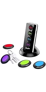 Localisateur De Clés, Anti-Perte Avec 1 Émetteur Et 4 D Tecteurs De Cl S 5 Kits Pour Cl S De Portefeuille (Les murs et autres obstacles réduisent le niveau sonore) Localisateur Avec Lampe Torche LED Détecteur De Clés, 1 émetteur + 4 Récepteurs, Portée 30 M Avec Lampe Torche Led Pour Cles Portefeuille Telephone Et Animaux 97043786 émetteur Récepteur RF 80 DB Volume et portée : l'émetteur et les récepteurs sont équipés d'un son d'alarme de 80 dB, qui est bien audible même dans des environnements bruyants. Sonnette sans fil, portée 400 m, étanchéité IP55, 55 mélodies, 5... Localisateur de clés avec récepteurs plus fins et télécommandes en... Le meilleur cadeau pour les personnes âgées et les personnes oubliées : ce localisateur de clés pratique est un produit excellent et unique qui vous aidera à éviter les tracas de chercher des objets perdus. Conception de l'émetteur de lampe de poche LED : pas besoin de téléphone portable ou d'application. C'est le cadeau parfait pour vos proches pour les vacances telles que la fête des pères, la fête des mères, Thanksgiving, Noël, Pâques, Halloween et les anniversaires. Appuyez simplement sur le bouton et suivez le bip pour trouver rapidement et facilement les objets perdus. La conception de la lampe de poche LED de l'émetteur aide à trouver les objets perdus dans l'obscurité. Localisateur de clés avec son : ce localisateur de clés comprend un émetteur, quatre récepteurs, un porte-clés et un ruban adhésif double face, qui peut être facilement attaché aux clés, télécommandes de télévision, téléphones portables, portefeuilles, animaux domestiques, bagages ou autres objets faciles à perdre.