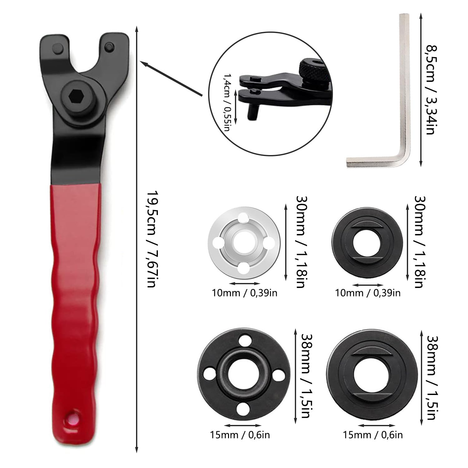 Clé Meuleuse Réglable Clés à Molette - Meuleuse D'angle - Clé Réglable Avec Poignée En Clé Hexagonale Acier Chromé Vanadium 1 Pcs Clé à Broche Réglable 8-48 mm Clé à Meuleuse Clé à Elle s'adapte de 8 à 48mm et est livrée avec tout le nécessaire : une clé Allen, et 4 brides (noires et argentées en 30 et 38mm). Fabriquée en acier carbone... Confort et durabilité : Conception ergonomique, poignée épaisse à revêtement plastique antidérapant, fabriquée dans un matériau de haute qualité, alliant confort et durabilité de l'outil. ADAPTATION PARFAITE : taille de 8 à 48 mm, entièrement réglable, convient à la plupart des meuleuses d'angle, meuleuses d'établi et autres équipements, utilisé pour le montage et le démontage des disques de meulage avec écrou de verrouillage. Matériau excellent et durable : Cle meuleuse fabriqué en acier au carbone / acier au chrome vanadium de haute qualité, structure robuste, résistant à l'usure et à la déformation, pour assurer une utilisation stable à long terme, pas facile à endommager Caractéristiques du produit : FACILE À UTILISER : Équipée d'une petite clé allen, la conception hexagonale de l'écrou rend la clé plus solide, le bouton rotatif est facile à ajuster, facile à utiliser. Réglage et adaptation flexibles : 8-48 mm Clé à Molette de Meuleuse réglage de la taille de 8 à 48 mm, angle réglable, ouverture de réglage de l'écrou rotatif, convient à une variété de meuleuses d'angle, de meuleuses d'établi et d'autres équipements, pour une large gamme de scénarios d'application Conception ergonomique et confortable : Clé à Broche Réglable la poignée en caoutchouc s'adapte de manière ergonomique, antidérapante et facile à tenir, réduisant la fatigue des mains, pour un fonctionnement précis et efficace Structure innovante et stable : Clé à molette conception hexagonale de l'écrou + corps épais, avec l'aide d'une clé hexagonale, connexion solide, amélioration de la durabilité et de la stabilité DES MATÉRIAUX DE QUALITÉ: La clé à molette réglable est fabriquée en matériau en acier au carbone de haute qualité. La poignée est enveloppée de caoutchouc antidérapant, résistant à l'usure et solide, antidérapante épaisse et belle.PLUS FORT: Les boulons réglable moletés sont faits avec de grosses vis avec des joints qui ne sont pas faciles à desserrer. Compte tenu de la...