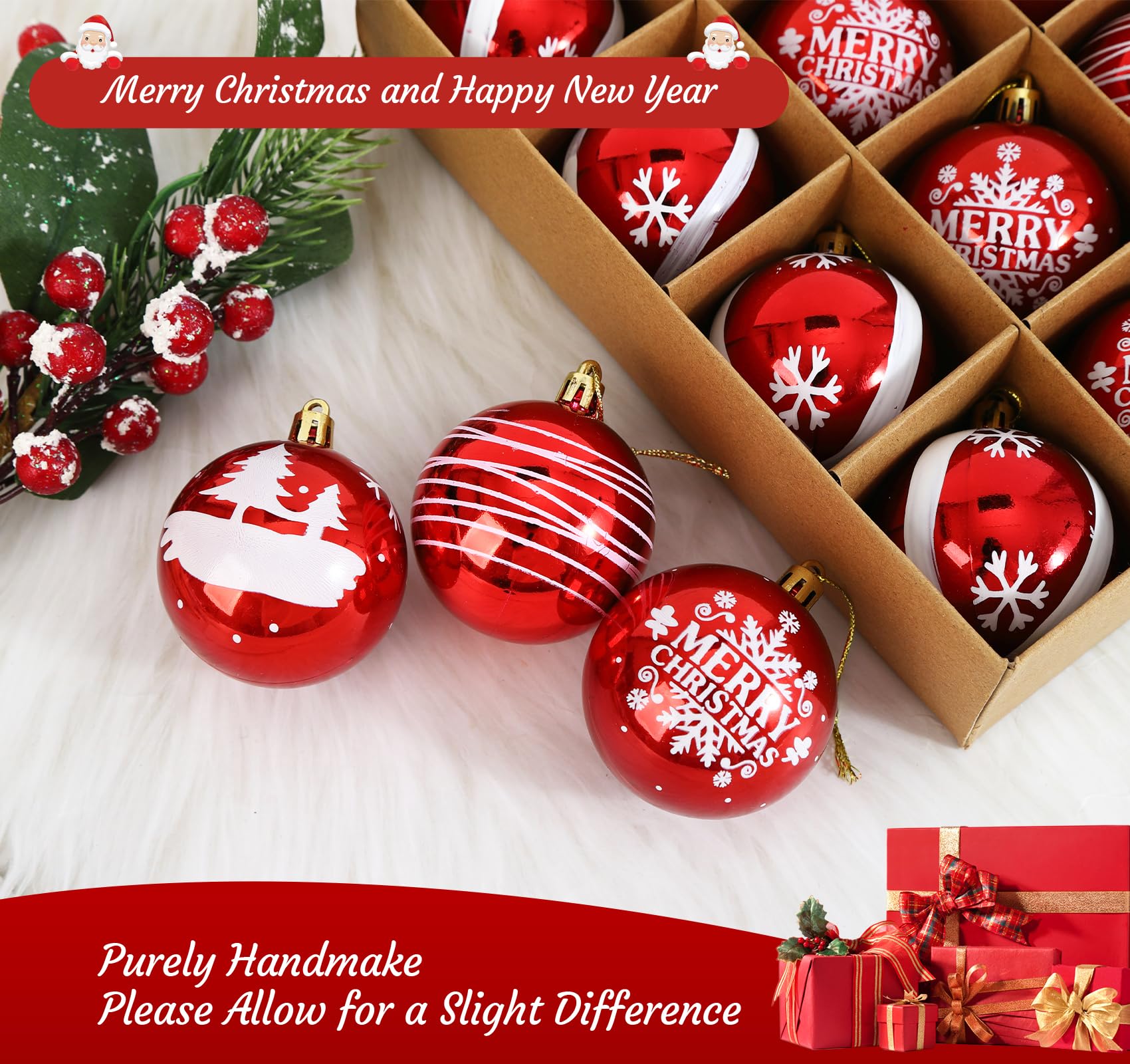 Paquet de Boules de Sapin de Noël en Forme de Coeur de Paillettes de 12-100mm (4) - Matte & Glitter Design - Décorations de Noël (Rouge, Argent & Or Ornements Noël Rouges Suspendus Affiche De Clôture Rouges Avec Différentes Textures Boules De Noël Design lumineux LED : Cet ange est doté de lumières LED intégrées, projetant une lueur chaleureuse et rayonnante sur votre sapin, s'adaptant parfaitement à vos... Lot de 16 boules de Noël rouges L'ensemble comprend un mélange attrayant de finitions brillantes et mates, les boules brillantes reflètent la lumière de manière éclatante, ajoutant de l'éclat... Contenu de l'emballage : 16 boules de Noël à suspendre pour sapin de Noël Matériau des boules de Noël : plastique