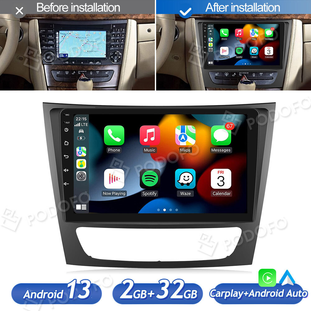 CAMECHO Autoradio pour Mercedes-benz E-Class W211(2002-2009) E200/E220/E240/E270/E280/E300/E320/E350/E430/E500/E55AMG/E550/E63AMG; Mercedes-benz CLS W219(2001-2011) CLS350/CLS500/CLS55 Caractéristiques : Android 13, 2G RAM + 64G ROM, 1., 3G Quad Core CPU Écran tactile capacitif IPS de 7 pouces (1024 x 600 pixels) Carplay/Android Auto sans fil et câblé Récepteur GPS intégré, compatible avec Waze/Navfree/Yandex Map, etc. (Attention: Les téléphones Samsung et Huawei ne sont pas pris en charge., ) 【ADAPTABLE MODLES】CAMECHO Autoradio pour Mercedes Benz CLS E-Class W211 W219, offre une installation plug-and-play, assurant une mise à niveau transparente sans modifications supplémentaires. Télécommande au volant d'origine Bluetooth 4., 0 intégré avec A2DP/Hands Free/Phone book Radio FM/RDS, Multi EQ, mémoire automatique/balayage des présélections Deux adaptateurs de câble USB à l'arrière Entrée vidéo inversée (en option) Spécifications : Tension d'alimentation : DC 12V Taille de l'écran : 7'' Capacitif Version Bluetooth : 4., 0 Mot clé Bluetooth : 0000 Résolution : 1080P Mot-clé du réglage d'usine : 8888 Format audio : MP3 AAC FLAC APE WMA WAV Format vidéo : AVI 3GP/MP4 MOV MPG MKV WMV RMVB Langue : Chinois, Japon, Afrique du Sud, Allemand, Estonie, Anglais, Espagne, France, Italie, Indonésie, Malaisie, Qatar, Danemark, Philippines, Lituanie, Croatie, Hongrie, Pays-Bas, Norvège, Pologne, Vietnam, Bulgarie, Corée du Sud, Slovénie, etc. Fonction d'écran partagé intégrée, vous pouvez ouvrir et utiliser deux applications en même temps. Vous pouvez également télécharger des données cartographiques et naviguer hors ligne, écouter de la musique en ligne via Spotify et regarder YouTube, également télécharger et installer la plupart des applications, afin que vous puissiez aller où vous voulez et vous amuser pendant votre voyage. Poste Radio Cd VECHTEL 8 Core 2G+64G Autoradio Android 13 Pour Mercedes Benz E Classe W211 E200 CLS W219 2002-2009, 9" IPS HD écran Tactile Avec Carplay Android Auto Peugeot 307 Test de l’autoradio Camecho Android 15 pour Mercedes-Benz 9 Il vous donne beaucoup de plaisir en assurant la sécurité pendant la conduite. WIFI : connexion Internet via hotspot, téléchargement de diverses applications. 【MIRROR LINK】 Le lien miroir intégré à l' carplay auto. ADAPTABLE MODLES] Convient pour Mercedes Benz W211 E-Class CLS-Class W219. Si vous n'êtes pas sûr que votre voiture convient à cette unité de tête, veuillez nous contacter avec la console centrale de votre voiture et les photos de la prise arrière du CD d'origine à pour obtenir de l'aide. Remarque Permet une intégration pratique de votre smartphone en mode sans fil (via WI-FI) et filaire (câble USB) pour les fonctions CarPlay et Android Auto, connecté avec un téléphone cellulaire, vous pouvez utiliser la commande vocale sur l'autoradio, accéder aux applications mobiles, au carnet d'adresses, à Internet, etc. IOS peuvent être connectés via WiFi; Android peuvent être connectés via WiFi ou un câble USB. Vous pouvez enregistrer jusqu’à 18 de vos stations de radio préférées Autoradio tactile GPS Bluetooth compatible Mercedes Classe E W211, CLS W219, Classe G W463 avec Android Auto, Apple Carplay et caméra de recul incluse. Mise à jour GPS à vie Visualisez le contenu de l'écran du téléphone portable via l'autoradio, l'utilisation du téléphone portable portable a été considérablement réduite et les performances de sécurité de conduite sont améliorées. Cet autoradio est équipé d'un décodeur CANBUS pour la commande au volant. 【SANS FIL CARPLAY & ANDROID AUTO】Cet Blutooth Radio voiture compatible avec Apple Carplay filaire/sans fil et Android Auto.