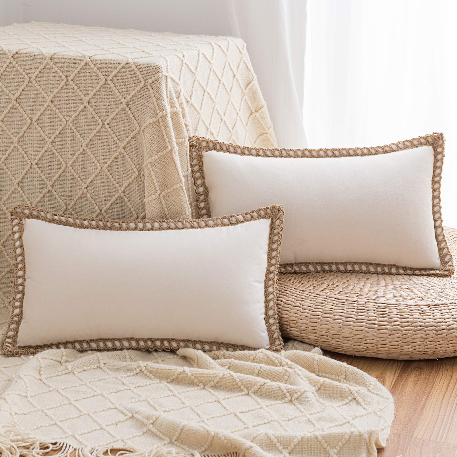 Utilisation polyvalente : nos housses de coussin sont livrées en lot de 2 et sont disponibles en quatre tailles différentes. Ces housses de coussin sont parfaites pour ajouter une touche de confort et de style à votre décoration d'intérieur Housses De Coussin Décoratives JOTOM Lot De 2 Housses De Coussin 30x50 Cm De Plaid Classique De Noël Housses De Coussin Maison De Campagne Taie D'oreiller Décoratifs Pour Canapé, Salon Et Lit(Noir Gris Accessoire Déco Maison Campagne Lot de 2 housses de coussin décoratives pour canapé, lit, salon, maison de campagne - 30,5 x 30,5 cm ... 30,5 cm sont conçues pour résister au démêlement et à la... Design élégant : les motifs imprimés uniques ajoutent une touche de mode à votre décoration intérieure. Fabriquées en tissu de haute qualité, ces housses de coussin de construction pour camion sont douces, confortables et parfaites pour ajouter une touche d'élégance à n'importe quel espace. Améliorez la décoration de votre maison avec notre lot de 2 housses de coussin décoratives. La fermeture éclair invisible assure un look élégant et élégant, ce qui rend ces taies d'oreiller décoratives pratiques et esthétiques Ces housses de coussin de construction pour camion sont un excellent ajout à la décoration de votre maison et de votre chambre. Avec une ouverture latérale dissimulée, ces housses de coussin sont faciles à remplacer et à enlever, garantissant un look élégant et élégant. Elles sont parfaites pour divers environnements, y compris les coussins de canapé, les coussins de chaise, les coussins de voiture, la décoration de chambre et la décoration intérieure Nos housses de coussin de construction pour camion sont non seulement élégantes, mais elles sont également faciles à entretenir. Housse de coussin - DECO MAISON - 30x50 cm - Lot de 2 - Velours doux - Blanc crème · Dimensions : 30x50 cm · Type de fibre : Synthétique · Couleur(s) : Blanc Crème Également un excellent choix de cadeau Housse de coussin avec fermeture éclair : avec des coutures plates et soignées, ces taies d'oreiller de 30,5 x 30,5 cm sont conçues pour résister au démêlage et à la déformation. La fermeture éclair invisible ajoute à l'esthétique générale, ce qui rend ces housses de coussin décoratives pratiques et élégantes. Feinib Housses De Coussins Décoratifs Bleu Denim Bouclé Avec Similicuir Lot De 2 Housses De Coussins