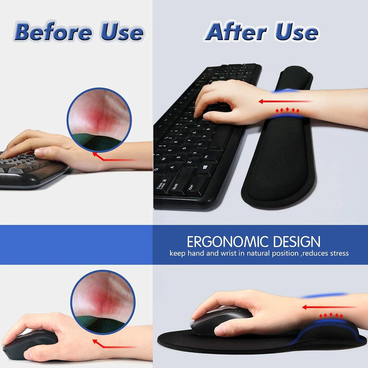 Tapis De Souris Et Repose-Poignet Clavier, Mouse Pad Ergonomique And Cet accessoire ergonomique se place devant votre clavier pour offrir un soutien et un confort optimal à vos poignets. Disponible dans différentes matières et formes, il s'adapte à tous les claviers et à toutes les préférences Repose-poignets Antidérapant 40x8cm Bureau Et Gaming Repos Poignets Clavier | Coussin Mémoire Pour Clavier Ergonomique Support Pour Poignet Clavier Conçu avec une approche ergonomique, ce repose-poignets pour clavier présente une finition dégradée élégante pour maximiser le confort pendant la frappe, les jeux vidéo ou les tâches sur ordinateur portable. En raison de différentes mesures manuelles, veuillez permettre une différence de taille de 1 à 2 cm. Mains de la saisie sur un clavier ergonomique 'split' conçu pour éviter... Grâce à sa base antidérapante, il reste solidement en place sur votre bureau ou tapis, répondant aux besoins des utilisateurs de âges, y compris les femmes, hommes, adultes, adolescents, étudiants et seniors. Aide Confortable à la Frappe : Assure une frappe confortable en encourageant une ergonomique, fabriqué avec une texture peau-amie et une finition dégradé anti-taches pour une utilisation prolongée sans inconfort. Il organise l'espace bureau tout en apportant un confort durable lors des de travail. Esthétique de travail améliorée: Ce repose-poignet clavier pour étudiants et professionnels allie fonctionnalité ergonomique et style moderne bleu-noir sans nécessiter d'installation.