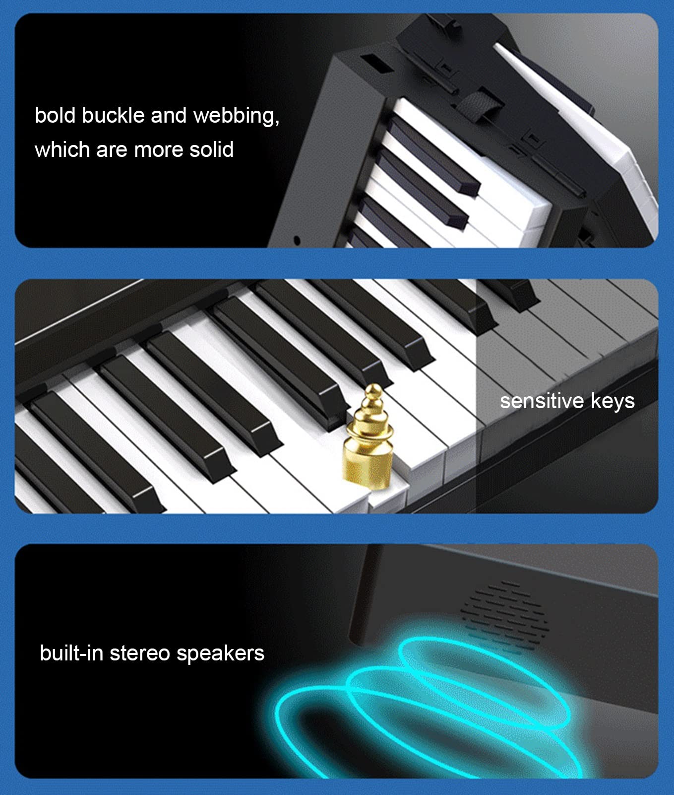 Vous avez toujours voulu acheter un piano mais votre maison est trop petite ?Avez-vous toujours voulu acheter un piano que vous pourrez facilement emporter avec vous ?Avez-vous toujours eu peur de prendre de la place lorsque vous ne voulez pas utiliser le piano ?Vous n'êtes pas obligé d'y renoncer : vous pouvez assouvir votre envie de musique avec un piano pliable. 【Fonction Bluetooth et MIDI】 Associez-le à votre smartphone ou tablette for rendre l'apprentissage du piano amusant. Design pliable créatif : le piano à clavier portable pleine taille peut être plié en deux, ce qui le rend unique. · Mesure manuelle, veuillez permettre de légères erreurs de taille. L'interface MIDI/USB permet de se connecter à votre ordinateur for éditer de la musique et jouer à des jeux de piano. Utilisez Bluetooth for vous connecter sans fil à des applications de jeux de piano ou à des cours de musique en ligne. Piano 88 Touches Portable Rechargeable Piano Numérique 88 Touches, Clavier De Piano Pliable Avec Connexion Sans Fil Midi Microphone Pupitre Pedale De Sustain Sac De Transport 97442154 Piano Numérique Batterie Lithium COOLMUSIC Clavier Piano Pliable 88 Touches Bluetooth Review: Le Verdict Dun Musicien Nomade Même si vous le mettez simplement à la maison, cela ne prend pas trop de place. · N'utilisez pas de diluants à peinture, de solvants, de liquides de nettoyage ou de produits chimiques sur le chiffon. Si vous ne voulez pas déranger les autres, vous pouvez brancher le casque. Pendant des années, j'ai mis ce rêve de côté, le considérant comme incompatible avec mon mode de vie. C'est précisément pour résoudre ce dilemme, ce conflit entre l'aspiration musicale et la contrainte spatiale, que des instruments comme le COOLMUSIC Clavier Piano Pliable 88 Touches Bluetooth ont été créés Equipé d'un sac de transport, que vous pratiquiez à l'école, partiez en voyage, jouez en plein air, il peut vous accompagner. Notre piano numérique pleine grandeur peut être alimenté par un adaptateur secteur ou des piles au lithium intégrées, ce qui rend le piano électronique adapté à une utilisation à la maison et en déplacement. 【Interfaces audio multiples】 Ce clavier de piano à 88 touches peut être connecté à divers appareils électroniques tels que des tablettes, des téléphones portables et des ordinateurs. Fonctionne sur batterie rechargeable (10-12h d'autonomie) ou via USB. Inclus 128 sons, 128 rythmes, et un pupitre pour les partitions. Interfaces casque, MP3... 【2 types d'alimentation】 Ce piano pleine grandeur est fabriqué en ABS de haute qualité, très solide et durable. En même temps, son poids léger est pratique à transporter et à emporter partout. Ne pèse que 4 kg et mesure 24,2 x 8,6 x 4,8 pouces une fois plié.