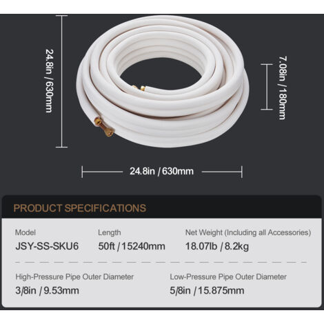 150 MM ABDOS Connecteur De Climatisation Ca Tube Remplacement D'évent... 【Artisanat raffiné】: L' mini-lignes divisées pour climatisation est fabriqué manière professionnelle pour garantir des performances et une longévité optimales dans diverses conditions environnementales 【Haute performance】: Conçu pour offrir des performances d'isolation élevées, le tuyau est résistant à l'usure, à la chaleur, au gel, aux dégâts des eaux et est étanche, difficile à casser tout en fonctionnant efficacement à hautes et basses températures Accessoire étanche Hautes Températures 150 MM ABDOS Connecteur De Climatisation Ca Tube Remplacement D'évent Tuyau Cuivre épaissi Avec Connecteur 【Cuivre épaissi】: Fabriqué à partir cuivre épaissi première qualité, le tuyau offre durabilité et fiabilité pour une utilisation à long terme Lot de 2 rallonges de tuyau en cuivre de climatisation - 1/2... 【Kit 】: Ce package comprend une ligne avec connecteur qui assure une installation transparente Ensemble de mini-conduites divisées pour climatisation, 3,28