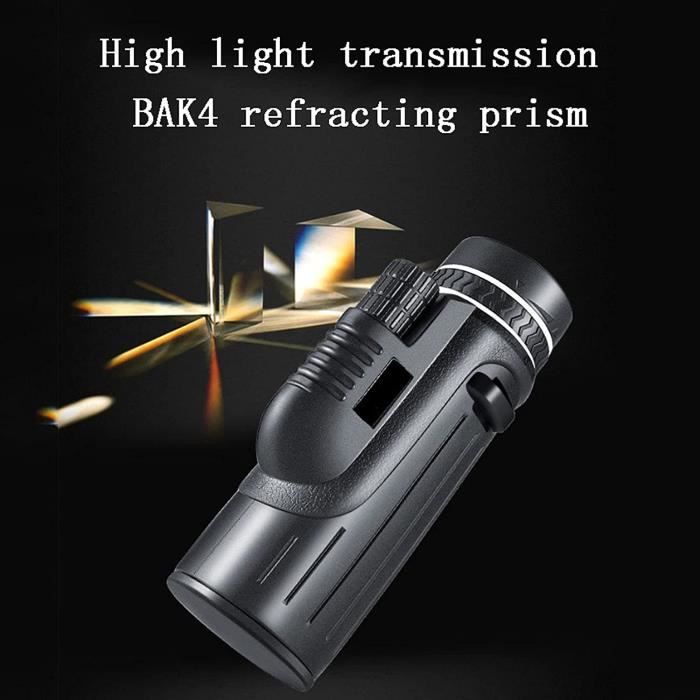 Quels sont les meilleurs télescopes monoculaires en 2025 - Futura Achat en ligne de Monoculaires - Jumelles, téléscopes et optique dans un vaste choix sur la boutique High-Tech Monocular Lens Definition Télescope,Monocular X Clip--Télescope Monoculaire 80X100 HD Puissant Monoculaire Avec Support Smartphone Les avantages de notre télescope : Mise au point d'une seule main, économie de temps et d'efforts Idéal pour les activités de plein air, regarder où que vous vous arrêtiez Rapprochez les vues lointaines, prenez des photos et des vidéos avec votre téléphone, partagez avec vos amis Traitement multicouche FMC, meilleure transmission de la lumière, images plus nettes et plus claires Grand oculaire offrant un champ de vision large, plus de confort Fonction de vision nocturne, observation super claire même la nuit Contenu de l'emballage : 1x Monoculaire 1x Boîte de voyage pour monoculaire 1x Support pour téléphone 1x Trépied 1x Capuchon d'objectif 1x Capuchon d'oculaire 1x Dragonne 1x Tissu de nettoyage 1x Manuel d'utilisation 【Facile à utiliser】Vous pouvez profiter du paysage facilement et rapidement en utilisant notre télescope monoculaire pour une seule main - ajustez l'œilleton et la molette de mise au point jusqu'à voir une image claire et lumineuse, le support pour smartphone et le trépied stable antidérapant vous aideraient à obtenir facilement une image HD ou une vidéo., Monoculaire. Monocular, Monoculaires, Télescope Monoculaire, 12x50 Monoculaire Prisme BAK4 et lentille FMC, Monoculaire Puissant, adapté pour l'observation des Oiseaux et la... Support étanche IP66 pour un usage domestique. 【Étanche et anti-poussière】Ce cache anti-poussière pour objectif intégré monoculaire peut empêcher l'objectif de la poussière/de l'humidité, assurez-vous que tout a une vue dégagée. C'est un incontournable pour les sorties, les excursions à la campagne, les concerts et les matchs de football. 【Large gamme d'utilisation】Nos télescopes sont pratiques, de petite taille et légers.