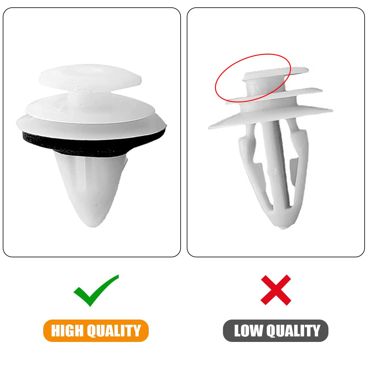 【Fonction Pratique】: Les boutons-pression de garniture de porte automobile de haute qualité conviennent pour remplacer les vieux boutons-pression de montage, les clips de montage manquants. Peut être utilisé pour les panneaux de porte, les pare-chocs, les poignées de porte, les capots et plus encore. 【Facile à Utiliser】: Les clips de garniture de porte de voiture sont légers et de petite taille, faciles à ranger ou à transporter dans votre voiture, faciles à utiliser, simples à installer et à retirer, faciles à installer et à retirer sans aucun outil, vous permettant d'économiser beaucoup de temps de travail, très pratiques, idéales pour fixer et remplacer vos vieilles boucles. - Peut être utilisé dans de nombreux endroits de la voiture, tels que les panneaux de porte, les fixations de garniture de porte, les panneaux de porte, les pare-chocs, les ailes, les capots, etc. JNNJ 10 Pièces Clips Fixation Pour Intérieur Voiture, Clips Ou les boutons-pression endommagés. - Petite taille, poids léger, pas facile à casser, solide et léger, facile à transporter et à ranger. Clips de pare-chocs - Plastique - 20PC - Taille du trou 10mm - Couleur... Ces clips de garniture de voiture sont un excellent kit de fixation, le retrait et l'installation ne blesseront pas votre voiture, un remplacement parfait pour les panneaux de garniture, les panneaux de garniture de porte, les pare-chocs et les ailes de voiture. Spécifications : - Nom du produit : Clips de fixation pour garniture de porte de voiture - Couleur du produit : noir, blanc - Matériau du produit : PP - Dimensions du produit : 20., 3*18., 2mm - Type d'application : Universel - Le produit comprend : 50*(snap+mousse insonorisante) ; 100*(snap+mousse insonorisante) Caractéristiques : - Haute qualité, poids léger, résistant à la corrosion, robuste, antirouille, résistant à l'usure, durable, peut être utilisé pendant longtemps. Facile à installer et à enlever avec un effet de fixation très stable. Clips Voiture Pas Cher JNNJ 10 Pièces Clips Fixation Pour Intérieur Voiture, Clips De Fixation Voiture Pour Pare-Chocs, Clips Garniture Intérieure Porte En Plastique, Robuste Et Durable Clip De Fixation Pour Panneau Clips De Fixation Carrosserie Haute Qualité]: Le clip de décoration intérieure de voiture est fabriqué en plastique de haute qualité, léger, résistant à la corrosion, robuste, inoxydable, résistant à l'usure, durable, pas facile à casser, petit et léger, pratique à ranger ou à transporter dans la voiture, c'est une bonne aide pour l'entretien de votre voiture. [Anneau D'étanchéité]: Les clips d... 【Le Paquet Comprend】: Deux paquets, 50 pièces par paquet et 100 pièces par paquet sont disponibles pour votre choix, assez pour répondre à vos besoins !