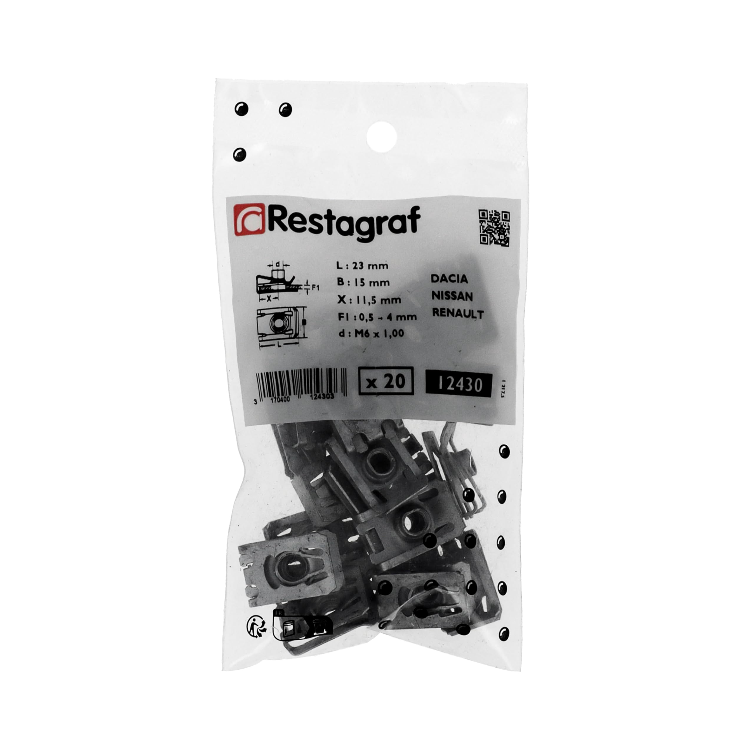Écrou d'hélice pour carter d'engrenage supérieur Mercury - Desjardins Sport Facade autoradio compatible avec Fiat Stilo Mecanique Auto Restagraf - Clips-Écrou à Pincer - Acier XC68 - Réf. 486 Clip écrou Restagraf Réf 10540 Ce clip écrou à pincer vous permettra de visser sur un trou situé en bord de tôle, en s’assurant que la vis ne flottera pas. COMPATIBILITÉ : Compatibles avec FIAT 500X, NISSAN KUBISTAR, RENAULT CLIO II, KANGOO, MEGANE II, SCENIC II, TWINGO. Sachet de 6 Écrou plastique ø 6 mm carter d'aile pare-boue pour CITROËN... Retrouvez ces fixations en sachet de 25., CLIP ÉCROU POUR VISSER AVEC EFFICACITÉ : Ce clip écrou à pincer vous permettra de visser sur un trou situé en bord de tôle, en s’assurant que la vis ne flottera pas. CARACTÉRISTIQUES : Distance Axe B., d., T ou Support : 6., 5 mm, Epaisseur du support : 1., 5 à 2., 5 mm, Epaisseur Matière : 0., 5 mm, Largeur hors tout : 9., 5 mm, Longueur hors tout : 13., 5 mm Retrouvez ces fixations en sachet de 25. HAUTE RESISTANCE : Sa composition en Acier Inoxydable Z11Cn18., 8 lui confère une haute résistance et lui permettra de tenir durablement dans le temps.