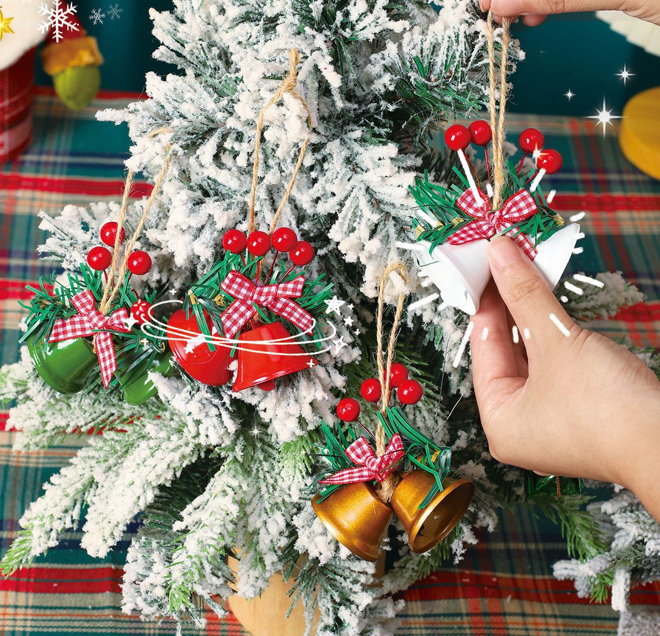 Clochette en forme d'un sapin avec des fines étoiles dorées | Decor-by... Large Gold Plastic Christmas Tree 210 cm Angoily Lot De 12 Cloches Décoratives Festives à Suspendre En Cloche de Noël verte et dorée – Décoration en fonte soigneusement conçue pour porte, fenêtre ou affichage saisonnier – Parfaite pour Noël | Leroy Merlin