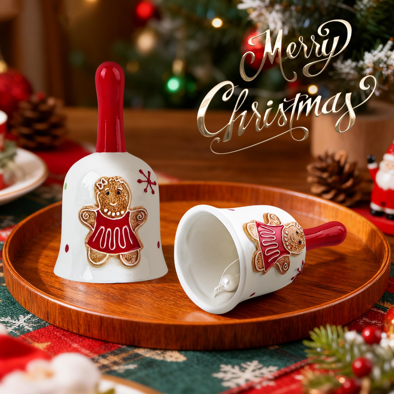 Cloche Dîner Festif Clochette Noel, Himissy Cloches Du Dîner, Cloche Noel, 14 X 8 Cloche Dîner Noël Himissy Himissy Cloche de Noël en Porcelaine, Sonnette Clochette Noël, Christmas Bell, Cloche à Main, Clochette de Table avec Poignée pour Restaurant, École, Hôtel, Cuisine, Décoration et Cadeau Festi Porcelaine de Haute Qualité]Cette clochette Noel est fabriquée en porcelaine durable de haute qualité avec une finition lisse et brillante pour une... Son motif de cloche et son motif en relief donnent vie à Noël. Savourez les saveurs de la cuisine de Noël. Cette cloche de Noël peut être utilisée comme décoration de Noël chez vous, à la réception d'un restaurant ou d'un magasin. Clochette Noel, Himissy Cloches du Dîner, Cloche Noel, 14 x 8 x 8 cm, Décoration Noel Table, Cloche de Dîner, Cloche en Porcelaine pour Tables Familiales, Restaurants et Bars Voici une cloche de Noël en céramique de haute qualité. Les cloches de Noël sont fabriquées en céramique de haute qualité. Les cloches de Noël produisent un son clair et mélodieux. Le cloche Noel sont parfaites pour les maisons, les restaurants, les bars, les cafés et les magasins, créant une ambiance de Noël chaleureuse. Clochette de Noël Noeud Naturel - Boule et déco de sapin - Eminza