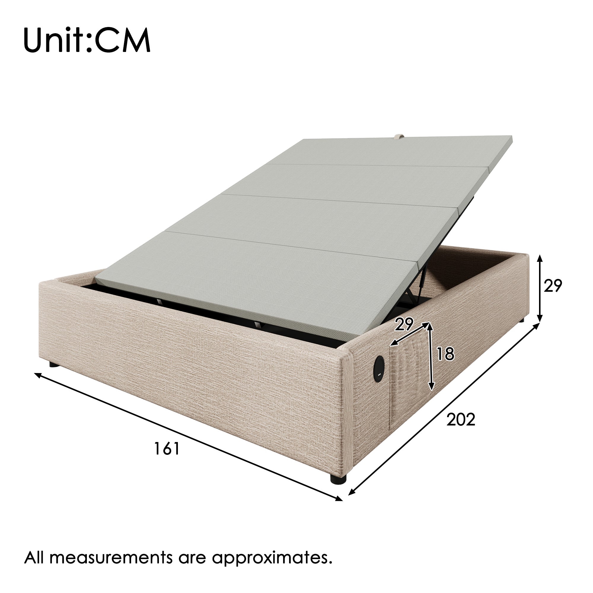 Les coussins en velours du dossier sont extrêmement confortables, ce qui en fait un endroit idéal pour lire ou regarder la télévision. Lit Coffre Hydraulique: Lit ado facile à soulever grâce au mécanisme hydraulique, offrant de rangement sous le lit 160x200 avec sommier. Lit Double éclairage LED Lit Coffre 160x200 Cm Avec LED Et USB, LUMINARIX, Lit Capitonné 160x200 Avec Tête De Lit Rangement, Structure De Lit ,velours, Blanc - Maison Lit Coffre 160x200 Rangement Hydraulique KIMENICH Lit Coffre 160 x 200 à LED, Lit Hydraulique avec Étagères Ouvertes et Rangement Caché en Tête de Lit Capitonné, lit 2 Personnes avec Lattes en Bois... Idéal pour stocker valises, vêtements hors saison, et bien plus encore. - Grand espace sous le lit pour ranger literie, vêtements ou autres objets essentiels, parfait pour les intérieurs avec espace limité. Pour toute question, contactez-nous. Lorsque vous déplacez le lit, soulevez-le au lieu de le pousser sur le sol. Parfait pour optimiser les petits espaces. Spécifications :Couleurs disponibles : BeigeMatériaux : Métal+ Velours + Bois. Les coussins rembourrés autour de la structure métallique réduisent le bruit et les vibrations pendant l'utilisation, améliorant ainsi la qualité du sommeil. Contenu :1 x cadre de lit1 x manuel d'assemblage Remarques :1., De légères variations de couleur peuvent survenir en fonction des écrans., 2., Tous les accessoires nécessaires sont inclus pour un montage simplifié. Minimum Maximum 2 options Lit coffre 160x200 cm, avec LED lampes cylindrique, 2 table de chevet, USB, rangement, sommier à lattes en bois, cadre en métal, lit capitonné en velours - Beige 6 301,99€ 431,99 Éclairage LED Personnalisables: Lit deux personnes avec bandes lumineuses LED à la tête et au pied du lit, contrôlées par un interrupteur manuel, ajoutent une touche esthétique et créent une ambiance romantique et immersive dans votre chambre. Si les deux colis arrivent mais que des pièces sont perdues, veuillez contacter le service client. Montage requis : OuiQuantité du paquet : 2 pièce. KIMENICH Lit Coffre 160 x 200 à LED, Lit Hydraulique avec Étagères Ouvertes et Rangement Caché en Tête de Lit Capitonné, lit 2 Personnes avec Lattes en Bois, Lits 160 x 200
