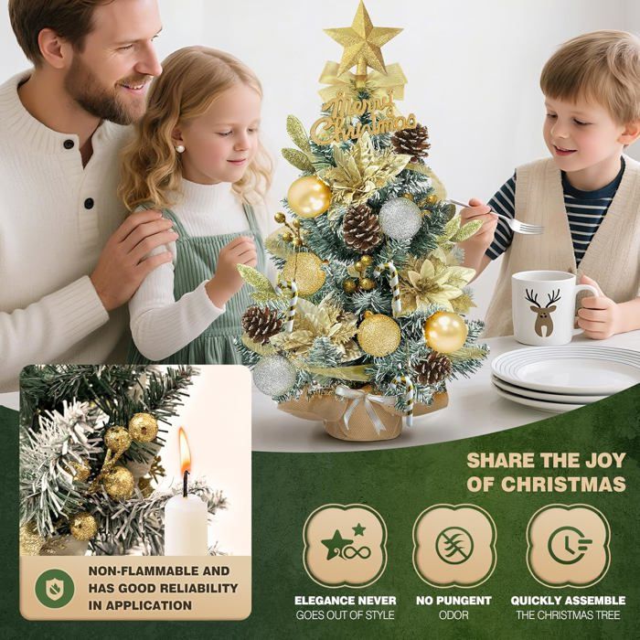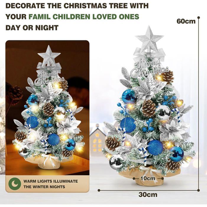C'est le cadeau idéal pour les enfants ou tout simplement pour transmettre chaleur et vœux de Noël. Sapin de Noel Lumineux LED 60cm, Arbre de Noël Artificiel Réaliste, Petit Sapins Décoration Décoré, Decoration Noel Table Interieur Maison avec Boules Noel... Deux piles AA sont nécessaires (remarque : piles non incluses). Ce sapin apportera une touche d'originalité à vos fêtes de fin d'année, de jour comme de nuit. Mini Sapin Noël Sapins De Noël 60 Cm, Sapin De Noel Miniature, Mini Sapin De Noël, Pour Une Décoration De Fête Sapin De Noel Lumineux 🎄【Sapin de Noël lumineux de bureau】: Équipé d'une guirlande lumineuse LED blanc chaud de 2 mètres de long. Mini Petit Sapin de Noel Vidéo de marchand 🎄【Pack petit sapin de Noël】: De nombreux accessoires à personnaliser selon vos envies, notamment des boules de Noël, des étoiles de sapin, des pommes de pin, des pendentifs en rotin, des inscriptions “Joyeux Noël”, des bandes lumineuses, etc. 🎄【Durable et économique】 : Ce mini sapin de Noël est fabriqué en Plastique et peint à la bombe. Le sapin artificiel est réutilisable et les aiguilles de pin sont en matériau ignifuge, ajoutant une touche d'éclat à votre Noël. Installez simplement le sapin, dépliez les branches et accrochez-y décorations de Noël et lumières LED selon vos envies. Les lumières chaleureuses d'un sapin de Noël illuminent la pièce, ajoutant à la magie des fêtes et créant une atmosphère chaleureuse pendant les longues nuits d'hiver. Illuminez votre espace avec le sapin HOMCOM et ses LED blanc chaud. Branches givrées, baies et pommes de pin ajoutent une touche magique. Design sans fil, branches ignifuges et base en béton garantissent sécurité et stabilité, parfait comme pièce maîtresse festive.Caractéristiques :- Sapin de Noël artificiel lumineux de 60 cm de haut s'illuminant avec des LED blanc chaud- Mode d... Créez une ambiance de Noël chaleureuse 🎄【Facile à installer, décoration de sapin de Noël DIY】 : Il suffit de sortir le sapin artificiel, de déplier les branches et d'accrocher les décorations de Noël et les guirlandes lumineuses LED selon vos besoins. Sapin de Noël Artificiel, Mini Sapin de Noël avec Décoration, LED avec Guirlandes Lumineuses,-60