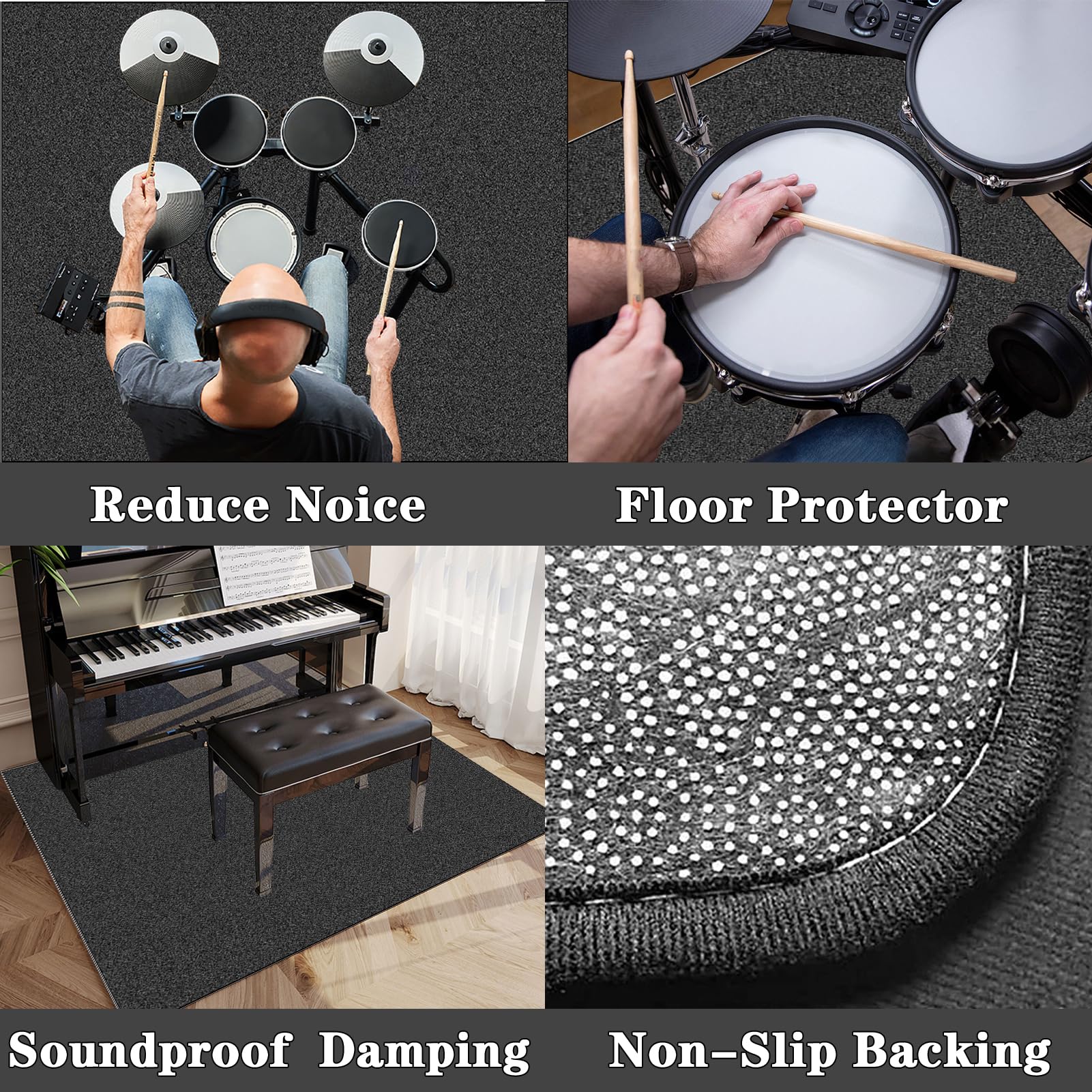 Tapis pour chambre d'enfant Astronaute Gris et Blanc 120x160cm Tapis pour chambre d'enfant rose lavable en machine Hippy Lorena Canals... Tapis Batterie 120x160cm Antidérapant Tapis De Batterie 160 X 120 Cm Tapis Pour Batterie Acoustique Insonorisant, Professionnel Rectangulaire Électronique Jazz Kit De Batterie Pour Basse Caisse Claire Instruments - Noir Mat Tapis Nanomat Pour Batterie 【Réduire le Bruit】Ce tapis pour batterie est fabriqué à partir de velours haute densité de cinq millimètres d'épaisseur, protégeant ainsi votre sol des dommages causés par les tabourets ou les pédales de batterie. Sa structure anti-déformation et ses bords renforcés garantissent une durabilité accrue. La couverture de batterie insonorisée est idéale pour les batteries de batterie, grosse caisse, batterie acoustique, batterie électronique, tapis de piano... Il minimise efficacement le bruit et les vibrations, vous permettant ainsi de vous concentrer sur votre pratique et votre performance. Grâce à lui, vous pouvez vous entraîner et vous produire en toute sérénité. Pour un fini plus propre et plus lisse, lavez avec un détergent liquide et repassez. Ce tapis pour tambour est résistant aux rayures et à l'humidité, très durable et facile à nettoyer : il suffit de l'essuyer pour lui redonner son aspect neuf.