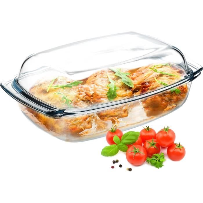 Verre Durable Sans Odeurs Le Creuset Cocotte De Buffet Avec Couvercle En Verre, 3,5 L, Sel De Mer En Fonte Canadian Tire Plat À Four Rectangulaire En Verre (Avec Couvercle-1.5L)[J861... KADAX Plat à Gratin En Verre Résistant à La Chaleur Avec Couvercle Et Poignees Cocotte Transparente Pour La Cuisson Au Four Rectangulaire 51 L 82169094 Grâce à son design élégant, le plat est parfait sur la table et la possibilité de passer au lave-vaisselle est confortable après chaque utilisation. Promo Plat Rectangle En Verre Avec Couvercle Pyrex chez Auchan Direct... Grande capacité de 5,4 l – Idéal pour les dîners de famille, les plats de Noël et la cuisine quotidienne Fabriqué en verre durable résistant à des températures allant de -40 °C à +300 °C, il vous permet de préparer et de servir des casseroles, des viandes, des légumes et des desserts sans nécessiter de plats supplémentaires. Le moule transparent vous permet de contrôler le processus de cuisson sans ouvrir le four. Ce plat rectangulaire résistant à la chaleur de 5,4 litres est la solution idéale pour tous ceux qui apprécient la fonctionnalité et l'esthétique de la cuisine.