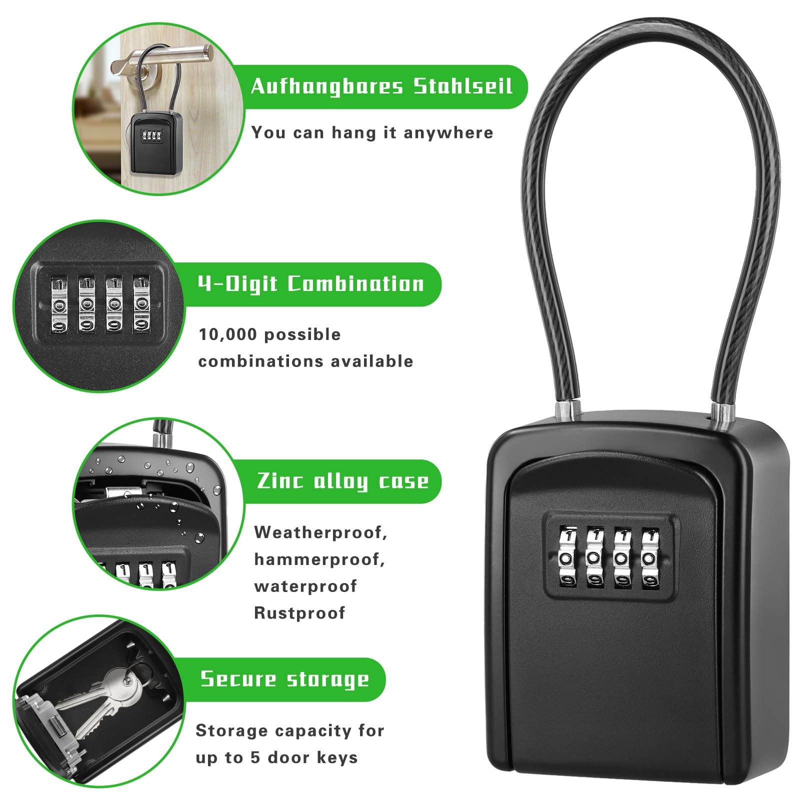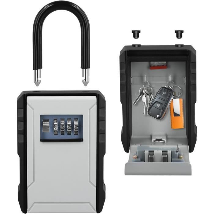 Cofre Fort A Cle Et A Code Coffre-fort Extérieur à Clés Avec Combinaison à 12 Chiffres, étanche Et Porte Clé Mural Boitier Clefs Securise Coffre-Fort À Clés avec Le Code De Combinaison Coffre-fort à clés avec combinaison à 4 chiffres - Serrure à combinaison étanche en métal pour l... Le coffre-fort se monte facilement au mur et est parfaitement protégé contre les intempéries grâce à sa construction résistante aux intempéries. Le coffre-fort à clés est la solution idéale pour les familles, les propriétaires ou pour le transfert temporaire des clés. Montage : montage mural facile avec points de fixation prévus, dimensions compactes de 11,6 x 9,4 x 3,8 cm Ce coffre-fort à clés de qualité supérieure offre un accès sécurisé à vos clés grâce à un code de combinaison pratique à 4 chiffres. Résistant aux intempéries : plastiques de qualité supérieure pour une protection fiable contre les intempéries et l'humidité Capacité : compartiment intérieur spacieux pour plusieurs clés, idéal pour la maison, le garage ou l'utilisation commerciale Construction : boîtier en plastique solide au design noir/argenté Boîte à clés extérieure gratuite avec code - Coffre-fort à clés extérieur