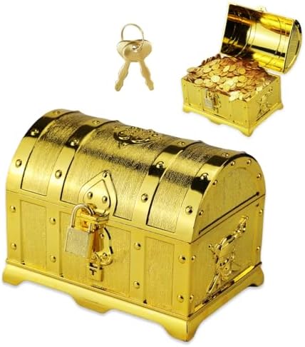 Playmobil lot coffre doré petites pièces trésor pirates médiévaux Coffre au Trésor pour Enfants : vous recevrez un coffre Coffre au trésor doré avec une serrure dorée et deux clés. Coffre Tresor Enfant Boîte Au Trésor Transparente, Coffres Au Trésor Transparents Boîte À Bonbons Boîtes Cadeaux Coffre Au Trésor Pour Enfant Nous vous répondrons dans les 24 heures. Matériau de haute qualité : le coffre au trésor est fabriqué en plastique de haute qualité avec un revêtement doré de première qualité, ce qui rend le coffre au... Boîte Au Trésor Transparente, Coffres Au Trésor Transparents Boîte À Bonbons Boîtes Cadeaux... Design Unique : Le Coffre au trésor doré est doté d'une serrure unique et d'un design d'angle en alliage, ajoutant une touche dorée. Il est idéal pour ranger et exposer vos bijoux préférés : bracelets, boucles d'oreilles, colliers, broches, pinces à cheveux, etc. Il peut non seulement servir à ranger des objets, mais aussi à le fermer pour une belle décoration. Coffre au trésor pour anniversaire d'enfant fabriqué en plastique de haute qualité, il protège tous les petits trésors de la poussière et des rayures Coffre au trésor pour anniversaire d'enfant peut être utilisé comme cadeau d'anniversaire ou de Noël, mettez de petits objets à l'intérieur, vous pouvez également jouer à un jeu de chasse au trésor amusant. Grande Capacité : la taille du Coffre au trésor doré est de 14 x 11 x 10 cm, ce qui vous offre suffisamment d'espace pour placer vos articles tout en garantissant que le contenu du coffre au trésor de rangement en bois est sûr et protégé de la poussière et de la rouille. Caractéristiques : Avec son design doré brillant, ce Coffre au Trésor de Pirate avec notre charmant coffre aux trésors assurera un plaisir sans fin à la fête de votre enfant.