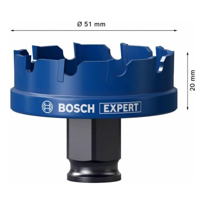 Scie trépan Bi-métal PROGRESSOR de diamètre 40mm - BOSCH - 2608594212... Perçage facile avec plus d'efficacité Grain gros pour un progrès rapide du travail Scie Cloche Bosch Carrelage Coffret Complet De Trépan Concrétion Carbure - SCID - 5 Trépans Foret Béton 53 Mm Bosch Convient à toutes les mars Perçage facile dans la maçonnerie, la brique et le carrelage. Arête de coupe munie d'un revêtement en carbure de tungstène. Grain grossier pour un travail rapide. À utiliser avec le flasque de serrage et le foret de centrage / Scies-trépans à concrétion carbure 53 mm Scie cloche HM 53 mm saupoudrée Bosch Accessories Foret de centrage Plus HSS-G (Interface hexagonale de