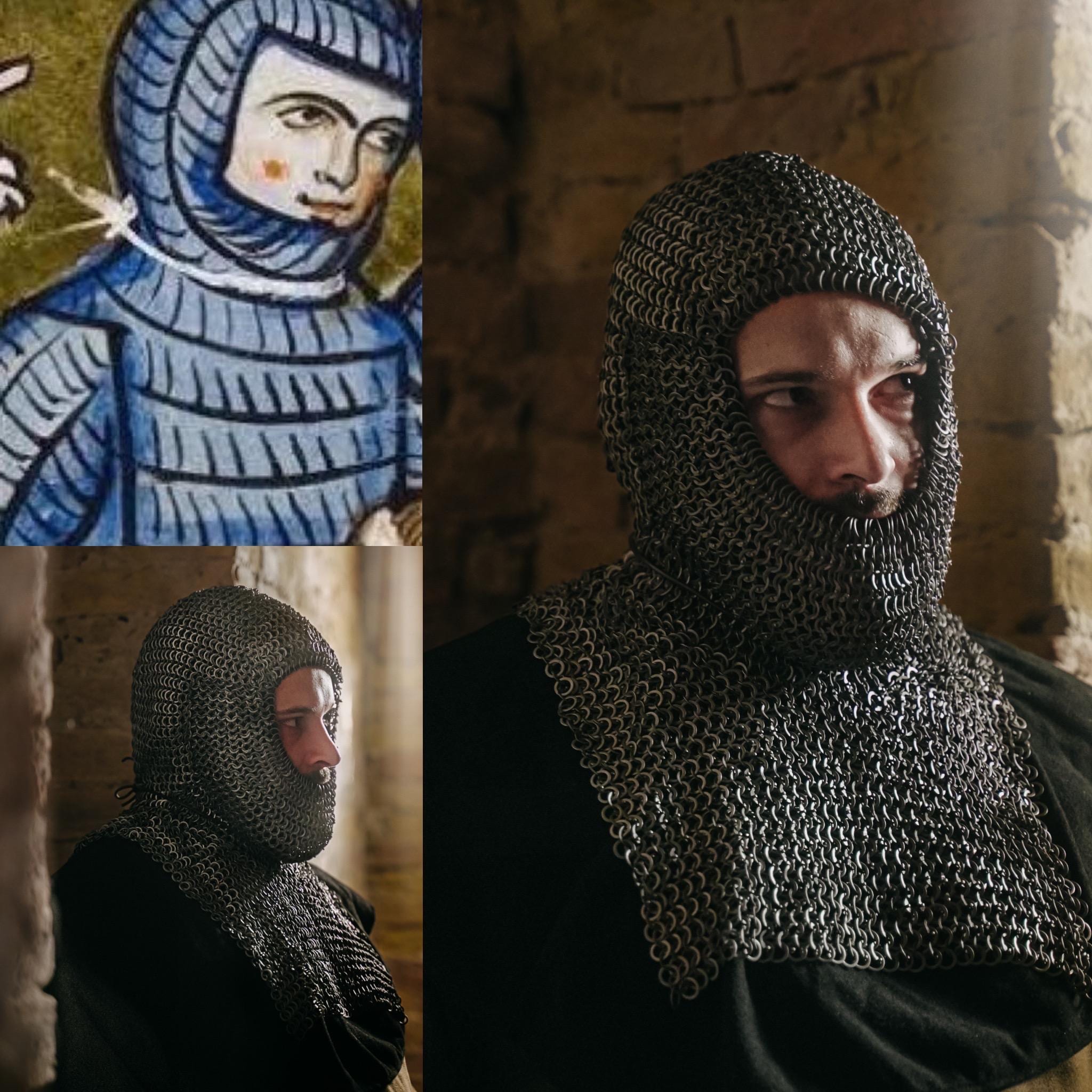 MEDIEVAL CHAIN MAIL COIF - CRUSADERS Nous faisons revivre l'histoire Design authentique : coif médiéval historiquement précis fabriqué avec des anneaux rivetés plats et une construction de rondelle pour une durabilité et une protection accrues Medieval Chainmail Coif Médiéval Chainmail Coif Capuche Plate Rivetée Avec Armure Médiévale LARP Parfait pour les amateurs d'histoire, les collectionneurs de costumes et les reconstitutions médiévales qui apprécient l'artisanat authentique. Equpement et Armement des Templers au Xè Sècle | Century armor... Coffe de cotte de malles plate rvetée de chevaler médéval, armure... Artisanat : chaque anneau est riveté et connecté individuellement pour créer un motif de maille dense qui met en valeur les techniques de blindage médiévales Construction : anneaux en acier de qualité supérieure méticuleusement liés à l'aide d'une technique traditionnelle de rivetage plat avec rondelles pour une résistance et une flexibilité supérieures Utilisation polyvalente : parfait pour les reconstitutions historiques, les spectacles théâtraux, les événements costumés et les présentations sur le thème médiéval Chaque anneau est soigneusement relié en utilisant des techniques de rivetage plat traditionnelles, assurant durabilité et précision historique. Couverture : la capuche intégrale offre une protection complète pour la tête, le cou et les épaules tout en conservant une excellente mobilité Dotée d'une construction rivetée plate avec renfort de rondelles, cette capuche offre le look classique des coiffes d'armure historiques.