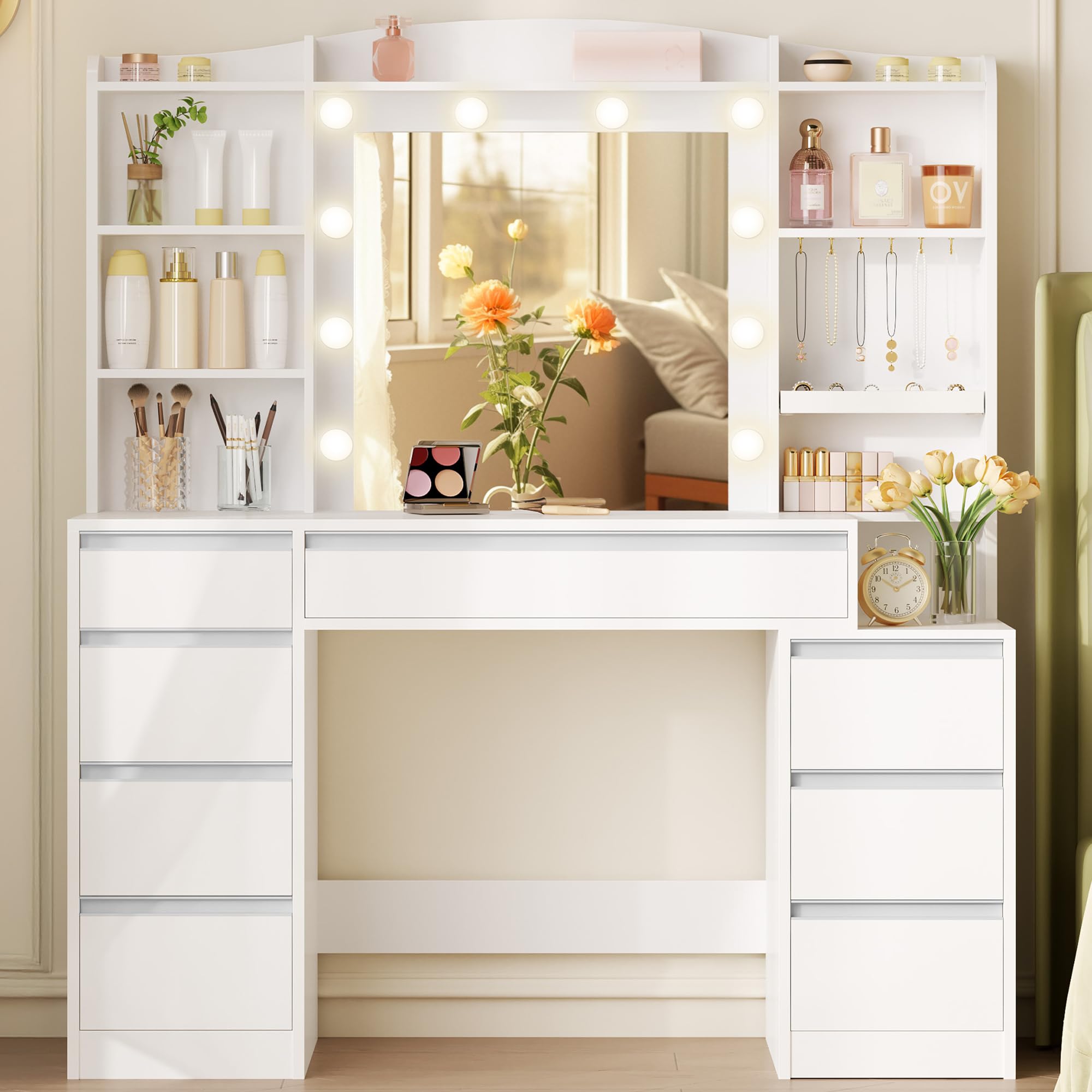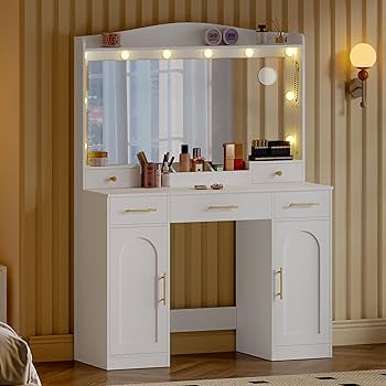 La partie supérieure peut être utilisée pour placer les bougies d'aromathérapie couramment utilisées, la lecture au lit, les téléphones portables et d'autres petites choses à portée de main, la partie inférieure est équipée de 3 tiroirs, un espace de stockage riche pour répondre facilement à vos besoins divers Coiffeuse 8 Tiroirs Rangement Hzuaneri Coiffeuse Avec 8 Tiroirs, Grand Miroir Avec Table De Chevet Intégrée Caractéristiques : Couleurs : Blanc Espace de Rangement Multifonctionnel] Cette coiffeuse offre un vaste espace de rangement avec 9 compartiments ouverts en haut, 1 grand tiroir et 8 petits tiroirs en bas Lumière colorée RGB : La coiffeuse est également équipée d'une ampoule colorée RGB-LED, qui peut changer 20 types de couleurs magnifiques. Rangement des bijoux : La coiffeuse dispose d'un espace de rangement pour les bijoux, avec des fentes de rangement en velours pour prendre soin des bagues et boucles d'oreilles précieuses, et plusieurs rangées de crochets pour suspendre plusieurs colliers en même temps, afin que les colliers ne s'emmêlent pas les uns dans les autres Hzuaneri Coiffeuse avec iroir, vanité de aquillage avec 4 étagères de... Merci de votre attente et de votre coopération ! Matériaux : Panneau de Particules, MDF, Verre Rangement des tiroirs de l'armoire : Le meuble de la coiffeuse est composé d'un grand tiroir central et d'un petit tiroir latéral, ce qui permet de ranger différents outils de beauté tels que des crayons à sourcils, des poudres, des pinceaux de maquillage, etc. Miroir élégant avec rangement bijoux intégré 40.5 x 38 x 161 cm Blanc Veuillez attendre de recevoir les deux colis avant de les assembler. Table de nuit en creux : Le côté droit de la conception de la table de nuit en creux, utilisant la hauteur décalée de la forme, Coiffeuse de chevet et la commode se connectent de manière intelligente.