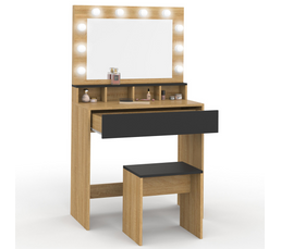 Transformez votre rituel en un moment fort de la journée ! Coiffeuse Sherry Anthracite/chêne doré 120x75cm avec miroir LED et tabouret Vicco | Anthracite/chêne doré | avec miroir LED & tabouret | 406673146956703 DIMENSIONS : La table de maquillage a une profondeur de 40 cm, une largeur de 100 cm et une hauteur de 155 cm. Miroir Lumineux 3 Couleurs Vicco Coiffeuse Melora, Chêne/noir, 100cm Avec Miroir LED Miroir Coiffeuse Avec son design bien pensé, elle offre un espace de rangement généreux pour tous vos produits de beauté et accessoires, tandis que le miroir LED à l'éclairage doux transforme votre lumière en la meilleure des aides au glamour. La coiffeuse de cette série offre un espace élégant pour votre routine beauté quotidienne. Vicco Coiffeuse Emma, Blanc, 120cm avec étagère miroir, tabouret... LIVRAISON : Coiffeuse, miroir LED, instructions de montage, matériel de montage Si vous avez des questions, consultez votre revendeur spécialisé local. Ajoutez une touche d'élégance et de fonctionnalité à votre pièce avec cette élégante coiffeuse. Avec son design moderne et son espace de rangement généreux, cette coiffeuse avec miroir est le compagnon idéal de votre routine beauté quotidienne Il convient d'utiliser des ferrures de fixation adaptées aux murs de la maison. Avertissement De Sûreté Important! Veuillez suivre attentivement chaque étape des instructions. Description du produit La coiffeuse Melora est plus qu'un simple meuble - elle est l'endroit parfait pour vos rituels quotidiens et vous procure des moments de bien-être personnel. MATÉRIAU : la coiffeuse est fabriquée en MDF robuste de 15 mm avec un revêtement en résine de mélamine qui est facile à entretenir et durable.