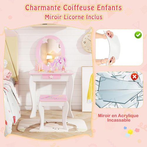 Inspirez de grands rêves et stimulez la créativité chez les enfants. GOPLUS Coiffeuse Enfant Fille, Coiffeuse Avec 3 Miroir Amovibl Et Tabouret Table De Maquillage 2 En 1 Pour Enfant 3 Ans Coiffeuse En Bois Avec Tiroir 10 Accessoires Blanc 79295600 Le miroir en acrylique évite les risques de cassure en morceaux coupants. Ensemble Bureau Coiffeuse Enfant ZONEKIZ Coiffeuse Pour Enfant Avec Tabouret Et Miroir, Petite Tabouret Coiffeuse Offrez un univers féerique avec la coiffeuse ZONEKIZ pour enfants, comprenant un bureau, un miroir en forme de nuage et un tabouret en rose enchanteur. Miroir clair et visible en acrylique Coiffeuse Princesse Europeenne, Table de Maquillage pour Enfant avec... Conforme aux normes EN71-1-2-3., Convient aux enfants de plus de 3 ans., Assemblage requis. MIROIR INCASSABLE : Idéal pour appliquer du maquillage, arranger les cheveux et se préparer pour l'école, cette coiffeuse pour enfants est un must-have. Coiffeuse Enfant avec Tabouret ZONEKIZ MDF 65.5x46x93cm Rose · Tabouret · Matière de la structure : MDF · Type de porte : Coulissante · Couleur(s... Adapté pour les enfants de 3 à 6 ans. Cette coiffeuse convient aux chambres, aux salles de jeux et aux crèches , Montage nécessaire Construite en MDF, cette table de maquillage est non seulement sécurisée mais aussi résistant pour une utilisation régulière. Package includes: 1 x Coiffeuse pour Enfants 1 x Tabouret 1 x Manuel tabouret : 29L x 29l x 30H cm.