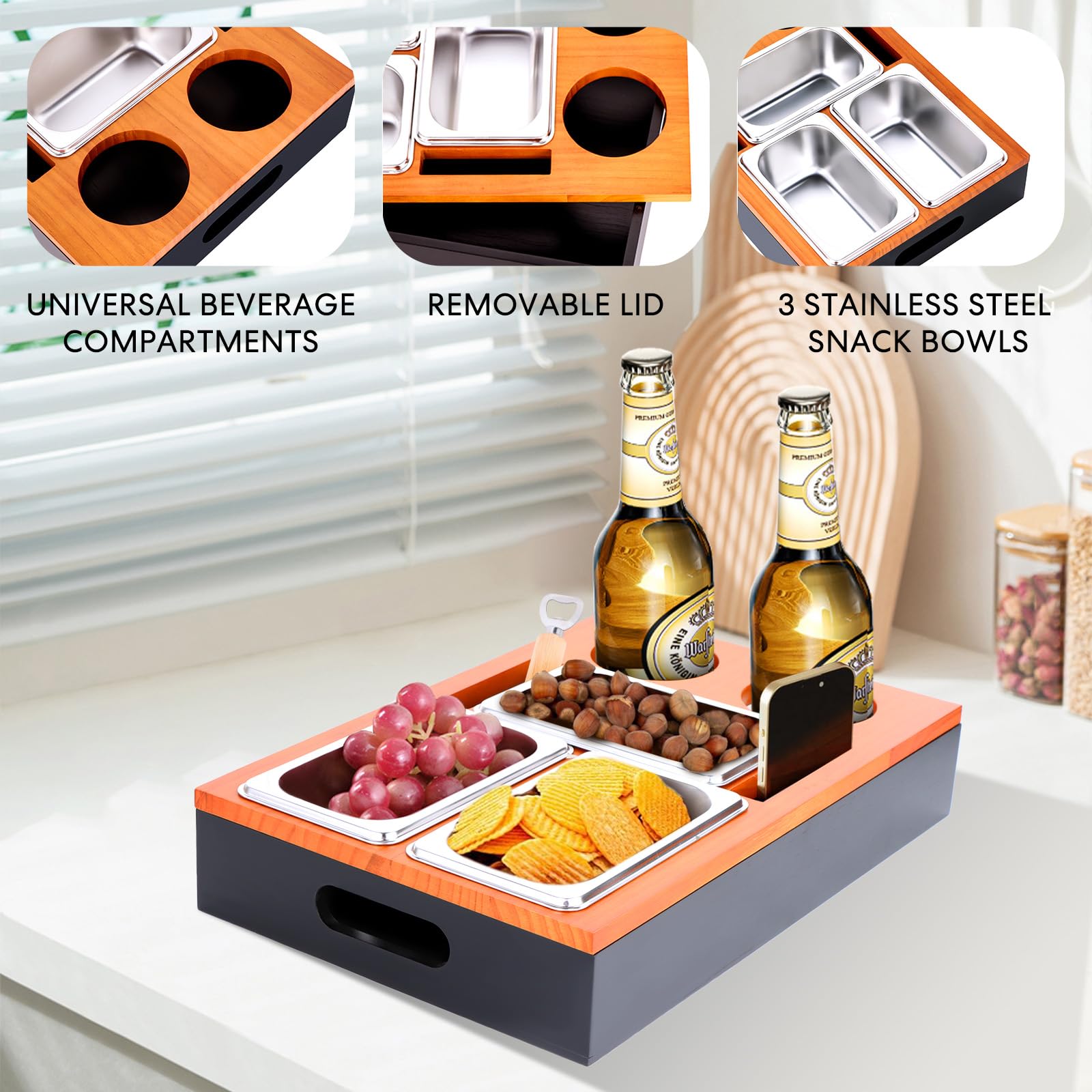 Que ce soit pour un anniversaire, un déménagement, la Fête des Mères, la Fête des Pères ou Noël – c'est le présent idéal pour toute occasion ! Boîte à Goûter Salon Camping Boîte à Goûter - Bar - Avec Bols à Collation Amovibles En Acier Inoxydable - Avec Couvercle Amovible - Convient Pour Le Salon, La Chambre à Coucher Plateau De Canapé 🍻Design multifonctionnel : Passez des soirées conviviales sur le canapé ! MANGEOIRE À PLATEAU TOURNANT (2 BOLS) INOX 🍻Utilisation exquise et astucieuse : Cette boîte à snacks pour canapé offre des solutions de rangement intelligentes pour snacks, boissons, bière, télécommandes, tablettes et plus encore. 🥂Possibilités d'utilisation polyvalentes : La barre de canapé n'est pas seulement pratique, c'est aussi un pièce de design élégante. Plateau avec 3 bols à sauces Nippon Black Tokyo Design Studio - Arteco... Que ce soit pour des heures de détente à la maison ou des soirées entre amis, la boîte à snacks avec compartiments est le choix parfait. 🥂Matériaux durables : Fabriqué en bambou de haute qualité, la tablette de canapé bénéficie d'une finition vernie naturelle qui protège contre l'humidité et garantit une durée de vie prolongée. Simple et user-friendly, elle convient non seulement à l'intérieur, mais aussi parfaitement pour des pique-niques en famille ou des excursions en camping. HOVCEH Canapé-bar, canapé, boîte à collation, plateau pour La construction robuste à tenons assure une stabilité – un organisateur de canapé qui séduit par sa qualité. 🍻Cadeau parfait : Que ce soit pour des heures de détente à la maison ou des soirées entre amis, la boîte à snacks avec compartiments est le choix parfait.
