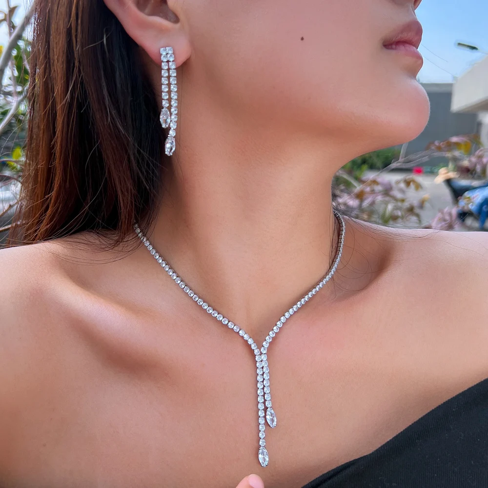 EFFET : Les pierres serties de strass dans les couleurs bleu et vert reflètent la lumière et créent un éclat fascinant qui attire le regard. DESIGN : Cet ensemble de bijoux en 2 parties comprend un collier réglable avec un élégant pendentif en forme de goutte et des boucles d'oreilles assorties. Collier Strass Femme Collier Ajustable Mariée Parure Bijoux EVER FAITH Cristal Autrichien - Collier, Boucles D'Oreilles, Bracelet 3PCS Bijoux Femme Bleu Vert Collier de mariée glamour avec pendentif en strass sur fine chaîne perlée en argent 925... Le design est moderne et féminin, ce qui le rend à la fois intemporel et stylé. Caractéristiques: 1 : Les matériaux sont soigneusement sélectionnés pour assurer confort et sécurité, sans risque d'allergie. Les strass étincelants en bleu et vert sont soigneusement sertis et garantissent un éclat époustouflant. Taille : pendentif du collier : 3., 7 cm, longueur du collier : 39., 9+7 cm, boucles d'oreilles : 5 cm. Les éléments en strass de couleur bleue et verte confèrent à l'ensemble un look glamour et coloré qui s'accorde parfaitement avec toutes les tenues. 4 : En portant cette parure, les femmes et les jeunes filles se sentent particulièrement élégantes et féminines. La surface claire et brillante de l'ensemble de bijoux est particulièrement noble et luxueuse. Taille : pendentif du collier : 3., 7 cm, longueur du collier : 39., 9+7 cm, boucles d'oreilles : 5 cm Couleur : argenté Notre collection de boucles de mariage est spécialement conçue pour les femmes qui souhaitent allier élégance et modernité. Réalisées exclusivement en or, ces parures précieuses apportent une touche de sophistication unique L'ensemble de bijoux convient parfaitement comme bijou de mariée et exprime l'élégance et le style. Elle met en valeur la beauté naturelle de celle qui la porte et lui confère une apparence unique et élégante qui impressionne en toute situation. 5 : La répartition bien pensée des tailles permet à chaque fille de profiter d'un ajustement parfait et d'un confort optimal. Femme Palais Style Cristal Goutte D'Eau Ciselée Chandelier Mariée Mariage Boucles D'Oreilles