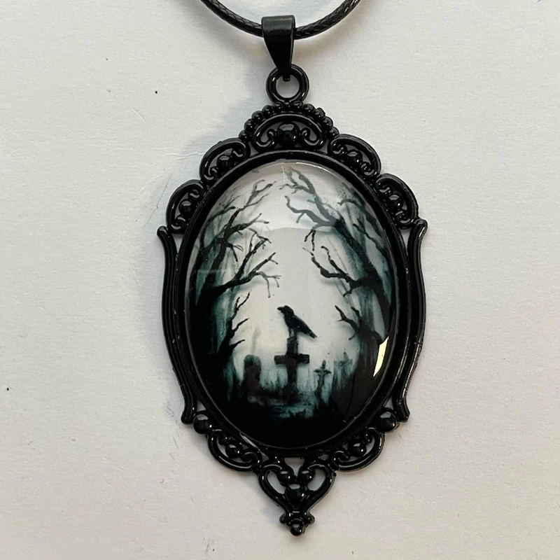 Ras de cou gothque, coller tour de cou ruban satn nor avec... Collier gothique ras de cou en broderie orné d'un camée Collier Ras Du Cou Avec Pendentif Perle Mode Gothique Corbeau Croix Verre Pendentif Collier Pour Hommes et Femmes Talisman Bijoux