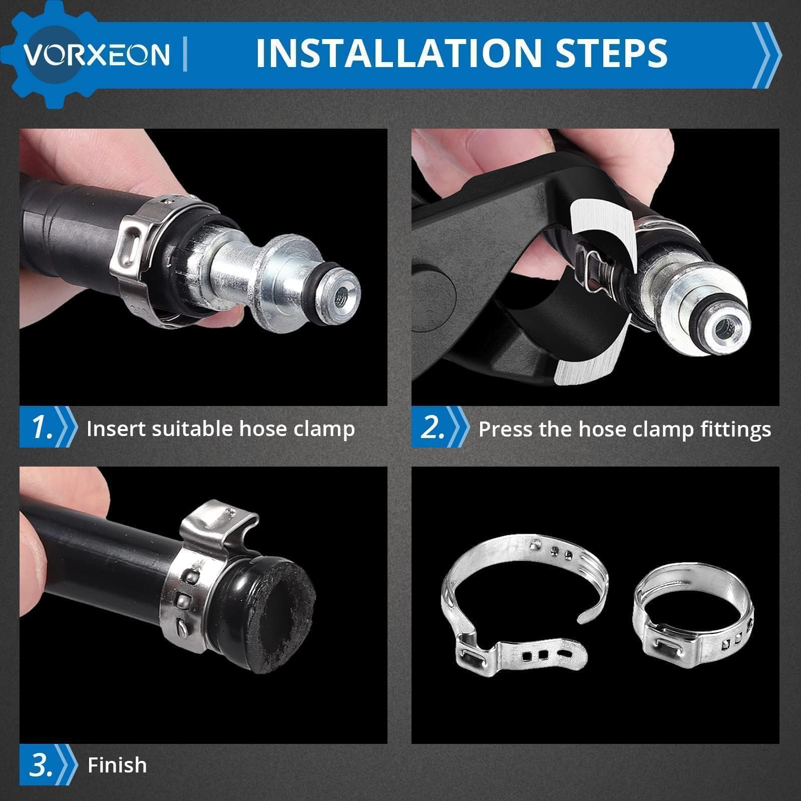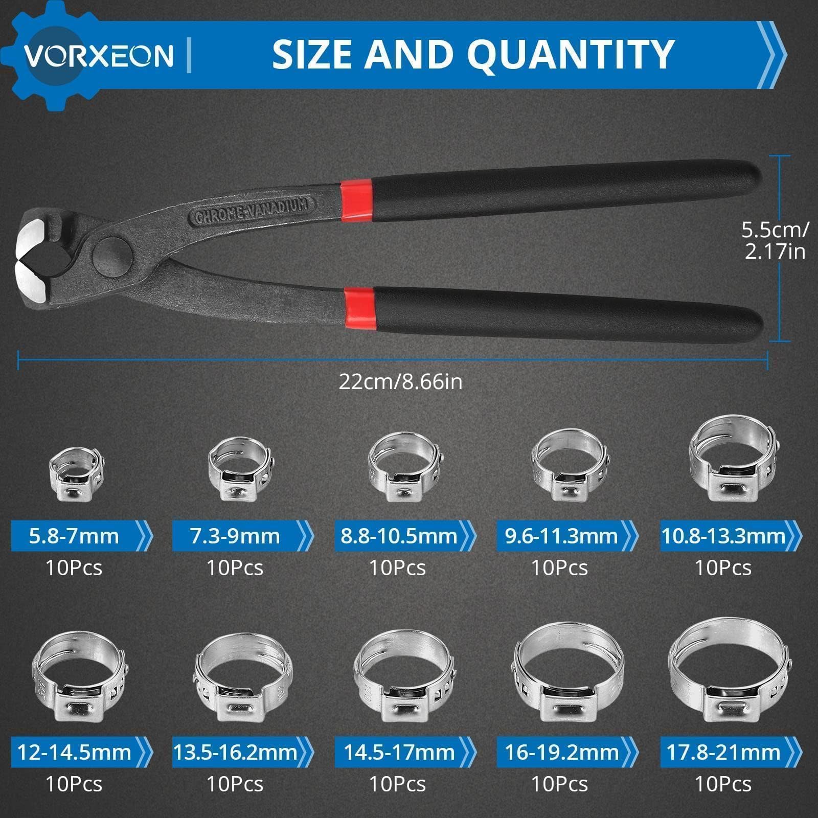 Colliers Tuyaux Acier Inox VORXEON Colliers De Serrage 100pcs Avec Pince Collier Tuyau, Colliers Tuyaux 5.8-21 En Acier Pince Knipex Les colliers de serrage pour tuyaux à air comprimé sont des raccords de tuyaux robustes, simples et sûrs. Ils se composent de deux parties avec des languettes mobiles et sont utilisés pour différentes armatures et applications ZJCHAO collier de tuyau d'air Collier de serrage 100pcs Kit d'assortiment de clips de tube 👍︎ Largement utilisé : Les colliers de serrage sont utilisés pour tous les pipelines, les systèmes de plomberie et les tuyaux de fixation, les tuyaux, les câbles, les tubes, les tuyaux d’huile, etc. Ce kit de 100 colliers de serrage en acier inox 304 est ultra complet. Diamètre de 5.8 à 21 mm, donc ça couvre plein d'usages. Ils sont résistants à la... L’assortiment de colliers de serrage est parfaitement appliqué dans divers domaines, tels que l’automobile, l’industrie, les navires, les maisons, l’intérieur et l’extérieur. Les mâchoires sont tranchantes et fabriquées en acier à haute teneur en carbone, qui résiste à l'écaillage et à la déformation. Ils peuvent satisfaire vos besoins quotidiens. 👍︎ Haute qualité et Résistant à la corrosion : VORXEON Colliers de serrage est fabriqué en acier inoxydable 304, qui a une bonne résistance à la corrosion, résistance à l’usure, peut être utilisé pendant une longue période, et le produit a passé la certification TUV.