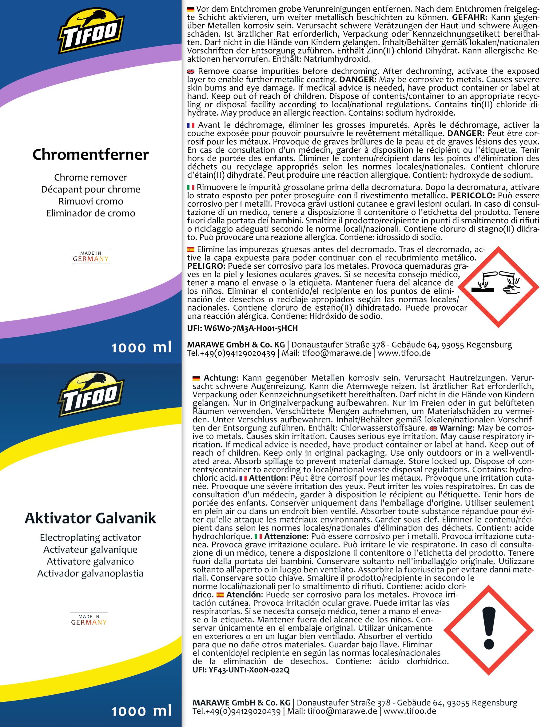 Activateur Décapage Chrome Colombo Bactuur Activator 500 Ml De Colombo - Produit Pour Aquarium Activateur Et Déchromeur Robinetterie Activateur galvanique (1000 l) – pré-active le nickel, l'aluiniu, l SuperFinn - 2 x Powerful Nettoyant Active Drain Gel Active - Déboucheur... En déchromant on enlève la couche de chrome pour que la couche au dessous soit disponible pour la galvanoplastie. Après avoir déchromé, vous pourrez, par exemple, dorer vous-même des jantes ou composants de voiture ou de moto désormais libres de chrome. La première étape pour faire briller votre véhicule. Mais pourquoi déchromer ? La réponse est tout simple : les composants chromés sont normalement couverts d’une couche d’oxydes, ce qui évite une recouverture galvanique. Le Tifoo Déchromeur vous permet de déchromer: - des robinetteries - des jantes - des pots d’échappement En général, il y a une couche de nickel sous la couche de chrome qu'il faut activer avec l'activateur inclus avant de continuer avec la galvanisation. En plus de cela, nous nous tenons volontiers à votre disposition en cas de questions. 1000 ml d'activateur + 1000 ml de déchromeur Technoutil-Chimie Solvant Diélectrique (SRB 1000) 400ml (Fabriqué en...