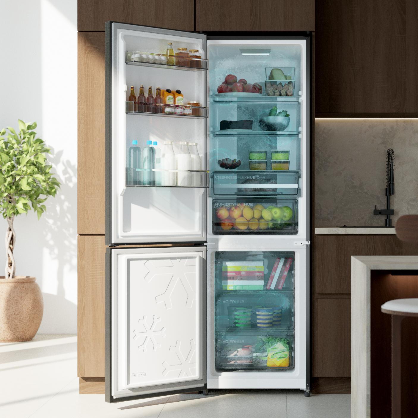 Bolero CoolMarket Combi 335 Grey E Frigorífico combi Cecotec De plus, les fonctions Fast Cooling et Fast Freezing vous permettent d'atteindre rapidement la température souhaitée, préservant mieux les nutriments. Découvrez... Réfrigérateur Cecotec Bolero 335L Gris Cecotec Réfrigérateur Combi 335L No Frost Bolero CoolMarket Combi 335 Grey E. Hauteur 195,3cm Et 59,5cm Largeur, Compresseur Inverter Plus, Basse Consommation, Tiroir Contrôle De L'Humidité, Gris Frigo Cecotec No Frost Réfrigérateur-congélateur gris pose libre, 195,3 cm de hauteur, 59,5 cm de largeur, capacité de 335 L, No Frost, compresseur Inverter Plus, compartiment Fresh Flex à température variable, tiroir avec contrôle de l'humidité, Multi AirFlow, Fast Cooling et Fast Freezing, lumière LED, ouverture à 90º, contrôle électronique, porte réversible, clayettes en verre et classe E. En outre, les fonctions Fast Cooling et Fast Freezing vous permettent d'atteindre rapidement la température souhaitée, tout en préservant mieux les nutriments. Bolero CoolMarket Combi 335 Grey E Réfrigérateur-congélateur gris pose libre, 195,3 cm de hauteur, 59,5 cm de largeur, capacité de 335 L, No Frost, compresseur Inverter Plus, compartiment Fresh Flex 0 ºC avec contrôle de l'humidité, Multi AirFlow, Fast Cooling et Fast Freezing, bac à fruits et légumes, lumière LED, contrôle électronique, porte réversible, clayettes en verre et... Ce réfrigérateur dispose d'un tiroir Freshnes Flex HUB à température variable avec contrôle de l'humidité, idéal pour conserver vos aliments à leur point optimal de fraîcheur et des boissons très froides. Avec une capacité de 335 litres, des dimensions compactes de 195,3 cm par 59,5 cm et des portes réversibles, cet appareil est parfait pour toute maison moderne. Les étagères en verre offrent une surface robuste et facile à nettoyer, assurant la stabilité de vos aliments. L'éclairage LED et le contrôle électronique facilitent l'utilisation quotidienne, offrant une visibilité claire et un réglage précis de la température.