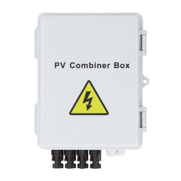 *Protection contre les surtensions, la surcharge, détection en temps réel, communication longue distance. Boîte de jonction 1000V DC 3 entrées 1 sorties BHS-3-1 La haute tension nominale assure la compatibilité avec différentes configurations de panneaux solaires, ce qui le rend polyvalent pour différentes exigences de systèmes photovoltaïques. Boîtier étanche Connexion DC Boîtier De Combinaison Solaire PV CC 3 EN 1 SORTIE 1000V Boîte Distribution PV 3 Entrées * La protection comprend la surtension, la surcharge, prolongeant la durée de vie de l'énergie solaire. * Boîte à chaîne/combineur LQX-C DC, adaptée aux centrales photovoltaïques résidentielles sur le toit Caractéristiques : Nom du produit : boîte de distribution solaire photovoltaïque., Matériau : PVC., Couleur : voir photo. Boîte de combinaison PV - MXZZAND - Solaire étanche 4 cordes - Fusible... La construction en PVC résistant aux intempéries offre une durabilité extérieure à long terme, ce qui la rend fiable pour un fonctionnement continu dans des environnements difficiles. Cette boîte de distribution solaire photovoltaïque dispose d'une configuration efficace 3 en 1 sortie, vous permettant de connecter plusieurs panneaux solaires à une seule sortie d'onduleur. Boîte de jonction BHS-3/1 DC à tension 1000V installée entre les panneaux solaires et l'onduleur solaire. Pour protéger le circuit solaire DC contre les surintensités et les surtensions, prolonger la durée de vie du système solaire et améliorer la sécurité du système Design à trois entrées et une sortie : boîte de combinaison solaire. Dimensions : 300 x 210 x 115 mm. Rationalisez votre système d'énergie solaire avec cette boîte de jonction pratique qui simplifie votre processus d'installation tout en conservant un flux d'énergie optimal. Caractéristiques : * Installé entre les panneaux solaires et les onduleurs solaires. Protection étanche IP65 : spécialement conçue avec un indice d'étanchéité IP65, cette boîte de distribution résiste aux conditions extérieures difficiles, y compris la pluie, la poussière et l'humidité.