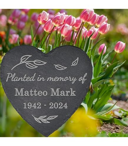Marqueur de pierres funéraires fabriqué à partir d'ardoise de roche naturelle, tout comme un cadre robuste et durable. Tailles adaptées à vos besoins : Nous offrons une variété de tailles telles que 10,2 x 10,2 cm, 15,2 x 15,2 cm et 20,3 x 20,3 cm, assurant que nos pierres commémoratives répondent à vos préférences spécifiques et aux exigences spatiales de l'emplacement prévu. Que ce soit pour être placé dans un cimetière, un cimetière familial ou même un coin serein de votre jardin, vous trouverez la taille idéale qui s'harmonise avec l'environnement. Il sert de souvenir idéal, de cadeau de soutien attentionné, de décoration commémorative pour les célébrations de la vie, et d'une touche décorative pour les occasions spéciales. Matériaux naturels pour une qualité et une grâce durables : Fabriquées à partir de roche naturelle de haute qualité, ces pierres commémoratives sont non seulement un témoignage de la beauté de la nature, mais également conçues pour résister à l'épreuve du temps. Créez facilement et rapidement la plaque funéraire que vous souhaitez. Toutes nos plaques sont personnalisables. Choisissez la forme de la plaque funéraire Nos pierres tombales en forme de cœur/carré (peinture ardoise) sont parfaites pour commémorer tout membre de la famille bien-aimé qui est décédé. Téléchargez le nom et les dates de la photo pour un souvenir unique en son genre. Chaque pierre est méticuleusement conçue, encapsulant l'essence même de la relation unique partagée avec les défunts, servant de rappel précieux de leur existence. Décoration Extérieure Mémoire Proche Pierre De Granit Commémorative Personnalisée, Pierres Tombales Pour Tombes Pierres Commemoratives De Jardin Plaques Commemoratives Pour Lexterieur Pierres Tombales De Cimetiere Pierre Tombale Objets Commémoratifs Et Funéraires Pour Chats L'allée avec les plaques commémoratives des héros de la seconde Guerre... Pierre tombale personnalisée pour chaque être cher. Souvenez-vous de vos proches avec support d'affichage en option. Dimensions disponibles : 10,2 x 10,2 cm, 15,2 x 15,2 cm, 20,3 x 20,3 cm. Que ce soit une mère, un père, un frère, un fils, une sœur ou toute personne chère, c'est un moyen idéal d'honorer leur mémoire avec un cadeau commémoratif personnalisé, transportant les souvenirs de votre bien-aimé perdu et offrant du réconfort pendant le processus de deuil. Plaques funéraires souvenirs et commémoratives personnalisées en céramique Qu'il s'agisse d'améliorer la solennité d'une tombe ou d'embellir votre jardin ou d'ajouter une touche de souvenir à votre maison, nous comprenons la douleur de perdre un être cher, et cette pierre tombale personnalisée vous aide à préserver ces précieux souvenirs. Leur design intemporel et leur allure naturelle en font un ajout précieux à tout endroit dédié à se souvenir de ceux qui nous sont chers. Comment concevoir ? Pierre funéraire de jardin personnalisée : choisissez parmi des pierres tombales naturelles en forme de carré ou en forme de cœur. Scénarios d'utilisation polyvalents pour chaque décor commémoratif : Convient pour une utilisation en intérieur et en extérieur, nos pierres commémoratives s'intègrent sans effort dans n'importe quel décor commémoratif.