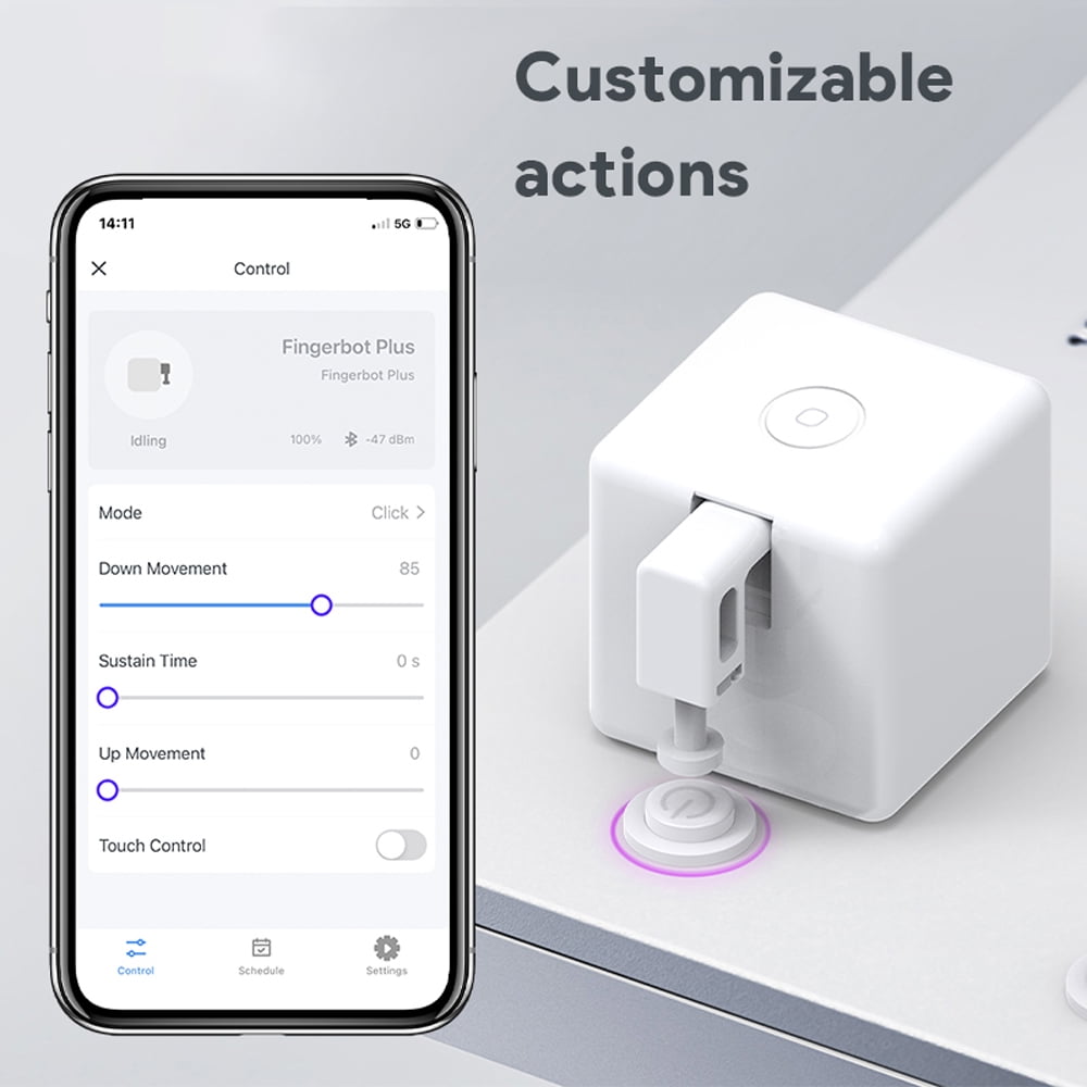 Facile à installer : ce fingerbot est facile à installer, il suffit de le coller au bon endroit et il est prêt à l'emploi. Automatisation Boutons Interrupteurs Maison Commutateur Wifi Smarthome Avec 1 Bouton Poussoir Compatible Avec Amazon Alexa Et Google Home Prise Telecommande Sans Fil Ce fingerbot pratique et intelligent rendra votre maison plus intelligente et plus simple. Robot aspirateur aspirateur intelligent pour la ma... – Grandado Couple d'arrêt : 1,6 kgf-cm Mouvement maximum : 8 mm. Mode de fonctionnement : clic. 1 offre à 29,83 € Filtres Livraison gratuite Prix croissant Pertinence Prix croissant Prix décroissant Prix total croissant Prix total décroissant Commutateur intelligent, BT Smart Home Finger Robot téléphone mobile APP télécommande maison machine à café interrupteur à bouton lumineux compatible Produit neuf ★ 4.6 / 5 Plus d'informations 29,83 € Livraison gratuite Délai de... Spécification : Matériau : ABS. Vous pouvez faire fonctionner mécaniquement tous les boutons et interrupteurs dans toute la maison à distance. Changer Protocole sans fil : BLE 4., 2 1 batterie au lithium, 500 mAh (incluse). Sonew Module de commutateur intelligent Mini module de commutation Si vous êtes intéressé par ce produit, venez l'essayer, vous ne serez pas déçu. Fingerbot intelligent pour la maison : ce fingerbot pratique et intelligent rendra votre maison plus intelligente et plus facile.