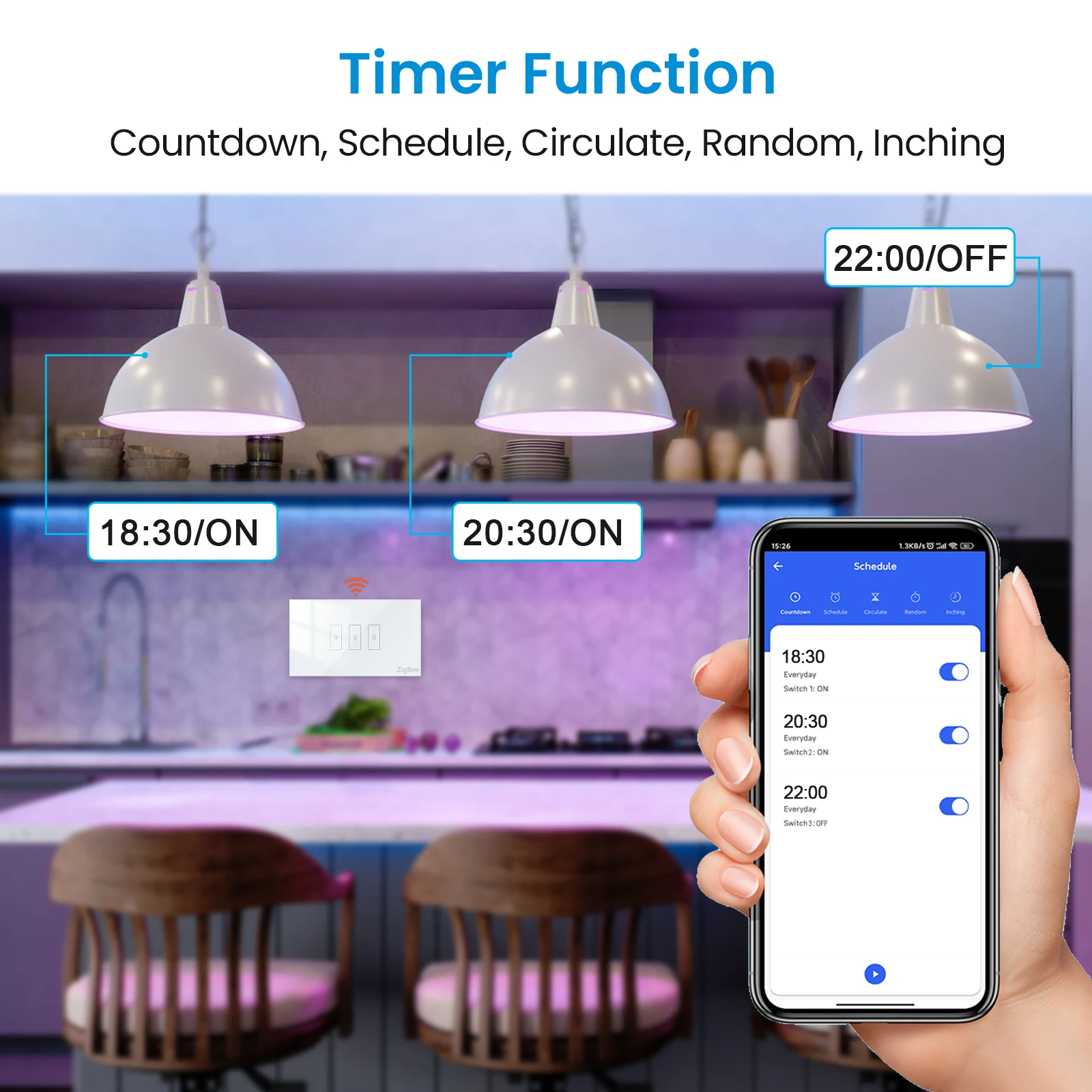 Tuya Smart Life WiFi/ZigBee Smart EU/US 1,2,3 gangs interrupteur télécommande minuterie fonctionne avec Google Assistant Alexa machine à café, four), des circuits (éclairage/climatisation) et des équipements de bureau (imprimante/moniteur) via des scénarios prédéfinis (ex., arrêt automatique à 17:00). Interrupteur Connecté Tuya Interrupteur Connecté TONGOU , 25A DIY Commutateur ZigBee Intelligent Compatible Avec Alexa, Google Assistant, TUYA/Smart Life APP Contrôle à Distance Google Home Module Rail DIN Intelligent 【AUTOMATISATION ET TÉLÉCOMMANDE POUR TOUS LES APPAREILS ÉLECTRIQUES】Permet l'automatisation des appareils ménagers (ex. Avec ce petit interrupteur ZigBee, vous pouvez par exemple transformer une lampe, un ventilateur ou un chauffage d'appoint en un objet connecté. TÉLÉCOMMANDE... Interrupteur intelligent WiFi RCBO de comptage de TUYA Smart Life avec minuterie, contrôle à distance, automatique, sans fil et fonction de reconnexion... Commande vocale via Alexa/Google assistant (exemple : Alexa, éteins les appareils électroménagers de la cuisine). 【CONTRÔLE PAR APPLICATION ET VOCAL + SCÈNES INTELLIGENTES】Prise en charge intégrée des TUYA APP. 【FONCTIONNALITÉS DE SÉCURITÉ ÉTENDUES】Protection contre les surcharges,Protection contre les surtensions,Protection contre la surchauffe,Certification de sécurité UE:Validée pour le domaine AC1 (charges résistives: éclairage LED, moteurs asynchrones), charge permanente recommandée : 1000W 【1P+N Contrôleur Intelligent】Prend en charge jusqu'à 63A sous 240V AC avec mesure d'énergie,Montage sur rail DIN 35 mm, n'occupe qu'un module (18 mm) Gestion des groupes d'appareils, programmations et scènes d'automatisation. TUYA ZigBee interrupteur intelligent Protection contre les surintensités et les sous-tensions Mesure de puissance 1-63 A Interrupteur de commande à distance sans fil.