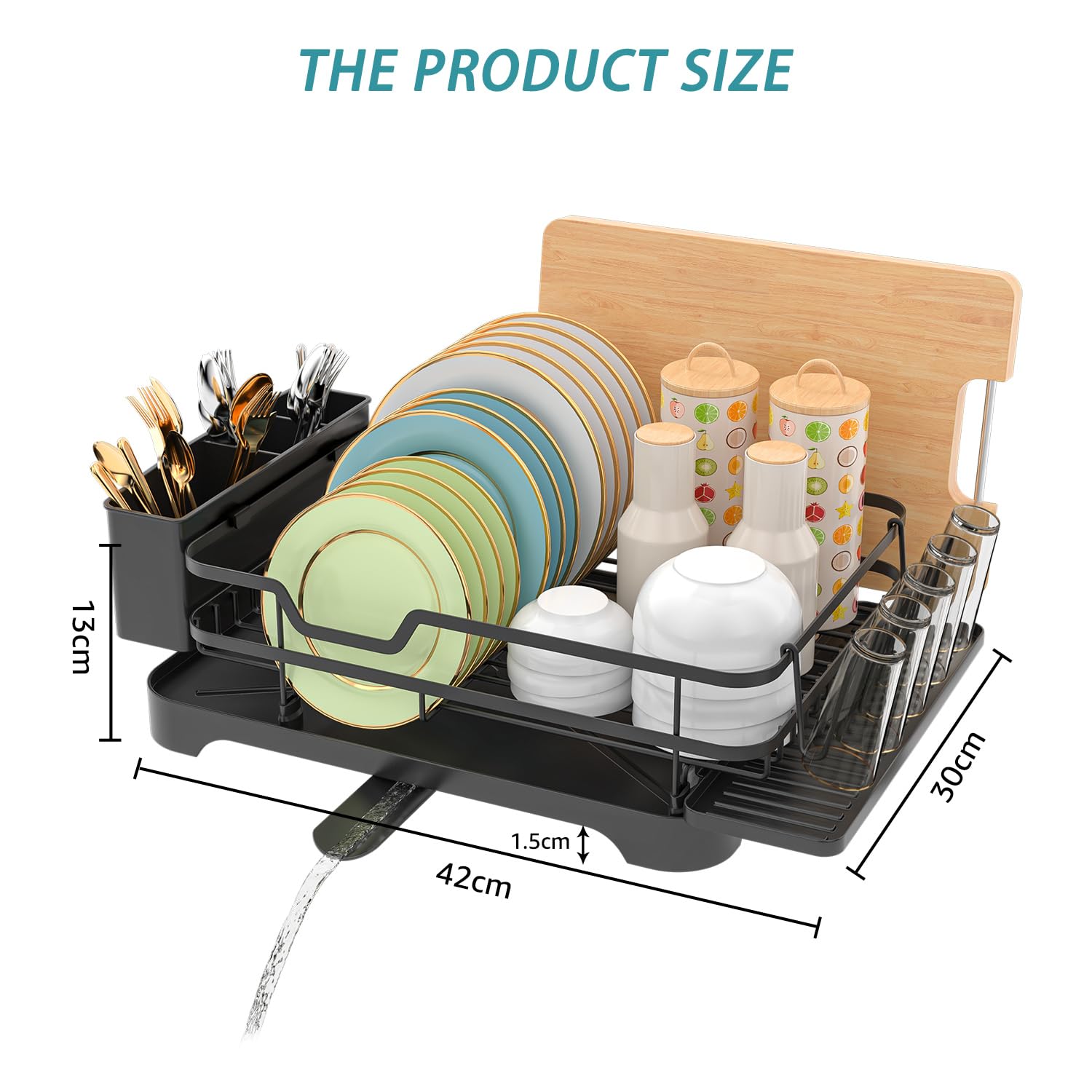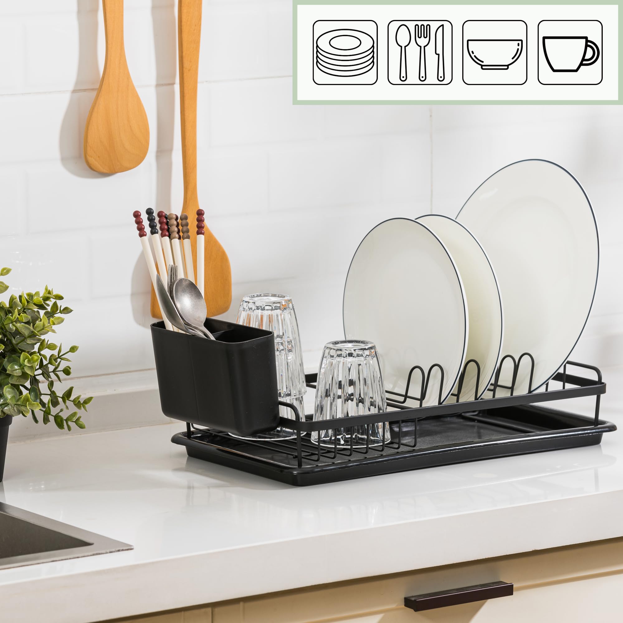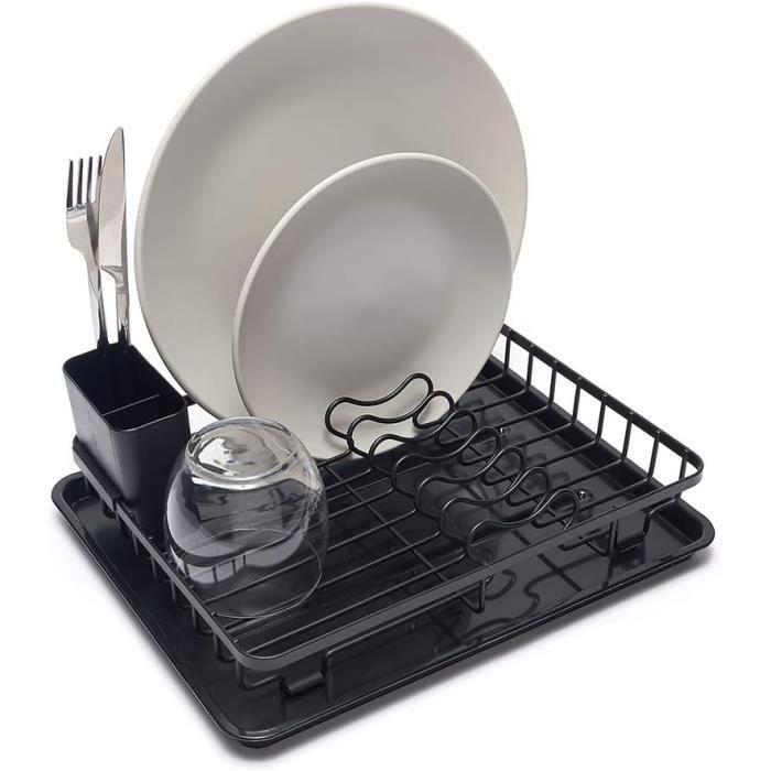 économiseur D'espace Cuisine Leadfun Égouttoir à Vaisselle – Compact Et Peu Encombrant Dish Drying Rack Anika 69049 Égouttoir à vaisselle de cuisine / Porte-couverts séparé / Bac d'égouttage amovible / noir / 44 x 32 x 13 cm Compact et Peu Encombrant avec Porte-Ustensiles, Idéal pour Comptoir ou Évier avec Plateau Égouttoir ¿ Capacité Jusqu¿à 12 Assiettes, 41 x 17 x 10 cm (Noir... Le plateau égouttoir en plastique de haute qualité inclus est amovible et facile à nettoyer pour une hygiène parfaite. 【Facile à Utiliser】L’installation est simple et rapide. Chaque colis comprend : 1 égouttoir, 1 porte-couverts, 1 plateau égouttoir et 1 manuel d'instructions. Ses coins arrondis et polis assurent une sécurité maximale, évitant les rayures sur vos mains et vos assiettes. 【Porte-Couverts Séparé】Le porte-couverts à deux compartiments vous permet de séparer facilement fourchettes, couteaux, cuillères et autres ustensiles de cuisine. Un design astucieux pour une cuisine bien rangée. Veuillez noter que le plateau n'est pas doté d'un bec de drainage automatique, mais il est facilement amovible pour être vidé. Ses coins arrondis et polis assurent une sécurité maximale, évitant les rayures sur vos mains et vos assiettes. Le plateau égouttoir en plastique de haute qualité inclus est amovible et facile à nettoyer pour une hygiène parfaite