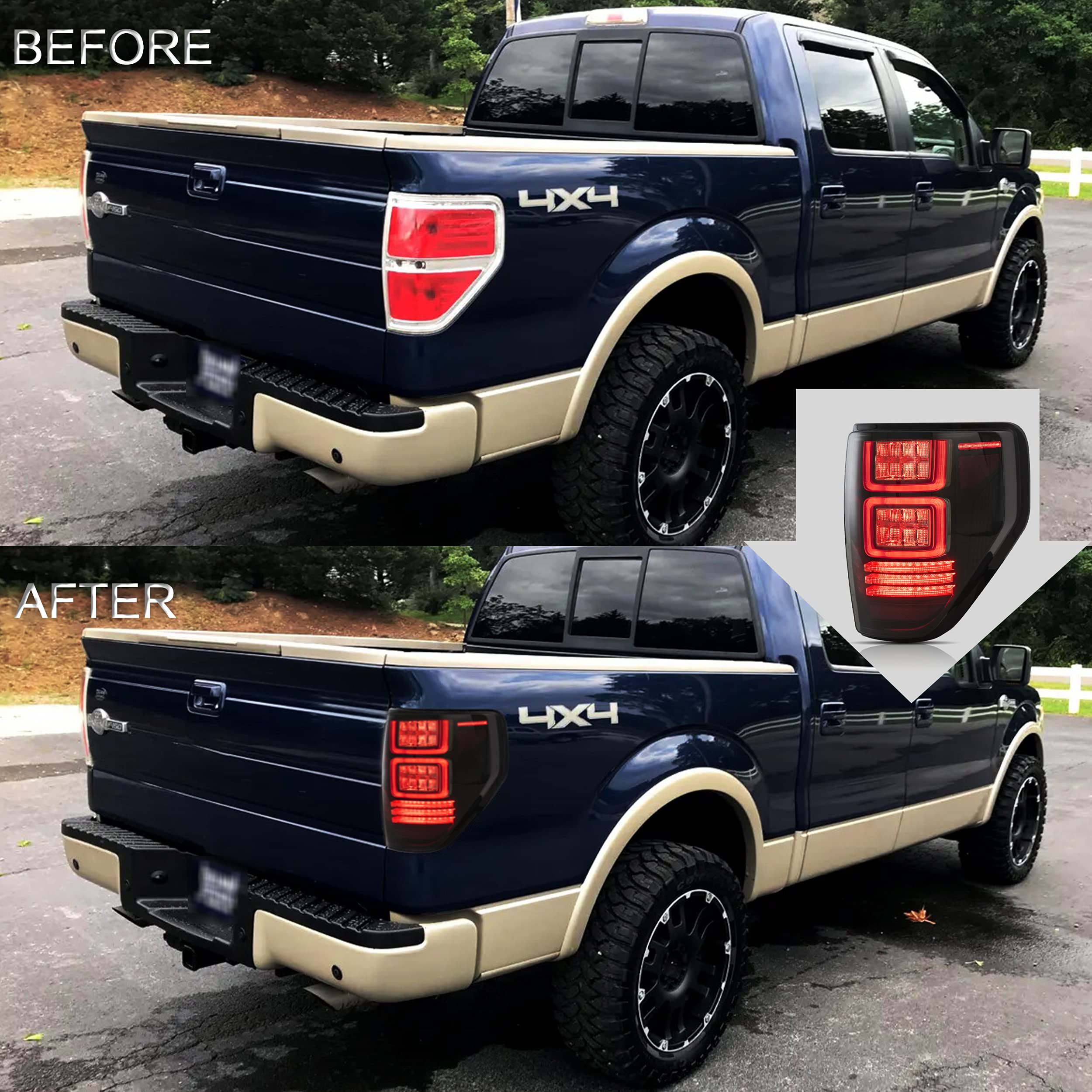 Feux arrière Vland Full LED pour Ford F150 2009-2014 avec indicateur Spécifications techniques : État : tout neuf Installation : pour une installation Plug and Play, remplacement direct de l'équipement d'origine. Feux Arrière Ford F150 2009-2014 VLAND Feux Arrière Fumés à DEL Compatibles Avec Ford F150 Pickup 2009 2010 2011 2012 2013 2014 Avec Clignotant Séquentiel Rouge, Remplacement Des Feux Arrière, Ne Convient Pas Aux Feux évasés Feux Arrière étanches IP67 ABS PC N'hésitez pas à nous informer avant l'installation. Akozon feu de recul Feux arrière dynamiques VLAND Full LED avec... Akozon clignotant Feux arrière dynamiques VLAND R‑Look Full LED... 【COMPATIBILITÉ】 Feu arrière pour 2009-2014 F150 Pickup: FX2, FX4, FX4 SuperCab, Lariat, XL, XLT, STX, STX SuperCrew, Tremor, Platinum, Limited, King Ranch, Harley-Davidson, SVT Raptor R. Difficulté d'installation : normale (environ 2 heures) Tension de fonctionnement : 12 V Matériau du boîtier : plastique ABS. 【EXCELLENTES PERFORMANCES】 Plus de luminosité et une bonne performance d'avertissement de sécurité ; vous permet de conduire plus en sécurité la nuit. Veuillez inspecter le produit s'il y a des dommages ou des défauts lors de la réception du colis. Couleur du boîtier : Noir Matériau de la lentille : PC Étanche : IP67 Couleur des verres : clair ; Fumée Fonctions : Feu de circulation : rouge Clignotant : ambre Feu stop : rouge Feu de recul : blanc Ce que vous obtenez dans le package : 1 paire de feux arrière (côté conducteur et passager) Tous les câblages et résistances nécessaires Compatibilité : Ensemble de feux arrière compatible avec 2009-2014 F150 Pickup Remarque : Veuillez confirmer le modèle et l'année du véhicule avant d'acheter.