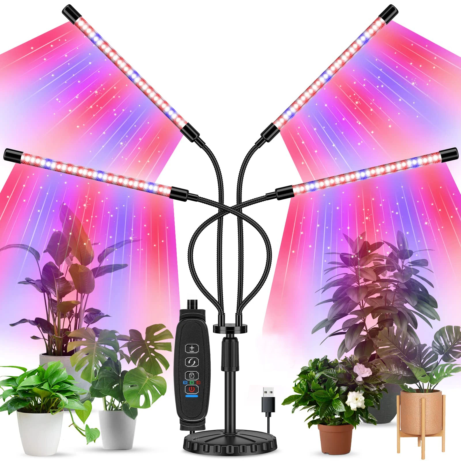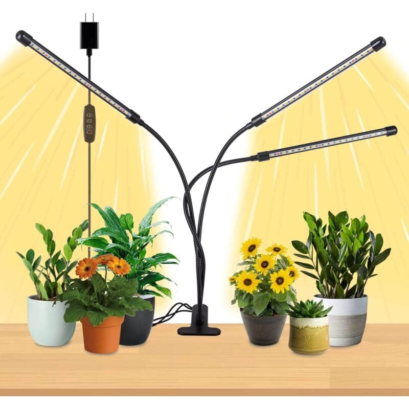 Lampe de Plante, LED Lampe Horticole avec 3 Modes d’éclairage 1 kit d'accessoires d'installation. éclairage Plante Intérieur éclairage Spectre Complet 72 LED Lampe Horticole LED 3 Têtes - Spectre Complet 72 LED - Minuterie 3/9/12H - Hauteur Réglable 60cm Lampe Plantes Réglable Hauteur Lampe Réglable Hauteur Intensité Le paquet conclus: 1 x lampe 1 connecteur de terre., 1 bloc d'alimentation. 3 modes de lumière (rouge bleu blanc, rouge bleu, blanc seul) et 10 niveaux de luminosité (10% à 100%) → parfait pour la germination, croissance, floraison Lampe de Plante Lumière Végétale 40W | 80 LED Quatre Têtes Lumière de... Facile à utiliser n'importe où dans la maison, le bureau, le salon ou le balcon. 【3 tableaux spectaculaires】La lampe à croissance se compose de 3 types de spectre avec 72 LED (36 blanches + 18 rouges + 18 bleus), une large plage de lumière qui peut fournir aux plantes une intensité lumineuse forte et uniforme. 3 têtes d'éclairage pour plantes : les lampes à 3 têtes ont non seulement résolu le problème d'installation et l'inflexibilité de la lampe de culture à LED traditionnelle, mais offrent également une zone de couverture beaucoup plus grande que la pince de croissance à deux bras. Caractristiques spciales: Matériau : aluminium 6063 Bouclier visage PC + tube en acier inoxydable Couleur : gris argenté. 3 modes et 10 niveaux à intensité variable : les lumières LED de culture sont disponibles avec 3 modes de commutation et 10 niveaux de gradation pour répondre à vos différents besoins. La rotation à 2 360° permet de placer la lumière dans n'importe quelle direction pour fournir à vos plantes le meilleur angle de lumière.