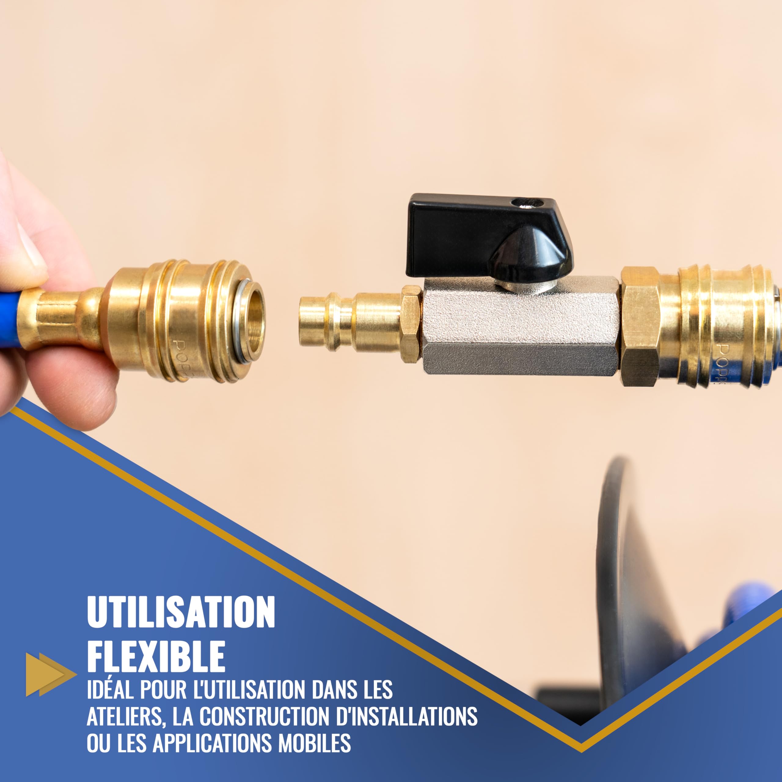 Raccord Atelier Raccord Rapide Air Comprimé 1/4, ANBOO Raccord Pneumatique Pour Compresseur, Embout Compresseur Connexion Rapide Tuyau Air Répartiteur d'air comprimé EVM 15-3 AV, Embrayage 3 prises Robinet à bille G 1/2 Valve laiton Kit complet pour le contrôle de l'air comprimé : comprend un robinet à boisseau sphérique de 3/8 avec raccord à changement rapide, un raccord enfichable et une... Doté d'une poignée robuste pour une stabilité et une prise en main optimales, il vous fait gagner un temps précieux tout en boostant l'efficacité du travail. Structure Anti-Fuite pour Raccord Pneumatique : Raccord air comprimé fabriqué avec précision par des artisans. Le raccord rapide en laiton garantit une connexion étanche et des performances d'étanchéité exceptionnelles. Matériau Premium pour Raccord Compresseur : Fabriqué en laiton forgé, ce raccord air comprimé offre dureté, durabilité, résistance à la corrosion, à la pression, anti-explosion, aux hautes températures et à la rupture. Cette structure robuste empêche efficacement les fuites de gaz, assurant une pression d'air stable dans votre système. Installation Facile des Accessoires Compresseur : Ce raccord compresseur (raccord rapide) permet une connexion/déconnexion rapide des connecteurs, raccords pneumatiques et ensembles de vannes miniatures. Large Compatibilité des Systèmes Air Comprimé : Ce raccord pneumatique est compatible avec la plupart des interfaces standard d'outils pneumatiques (cloueuses, pistolets, meuleuses, etc., ). Faciles à manipuler, à brancher et à débrancher, les raccords rapides RCS offrent un confort d'utilisation exceptionnel. Leur technologie anti-coup de fouet garantit la sécurité totale de l’opérateur