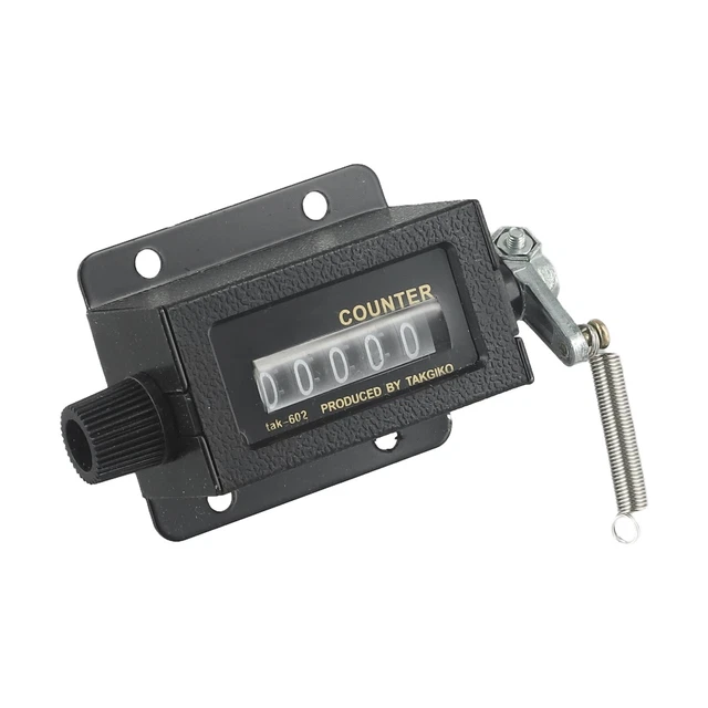 Compteur De Traction Industriel YEN - Compteur à 5 Chiffres Compteur Mécanique à 5 Chiffres En Métal à Votre Compte Après retour à zéro, il peut commencer à compter à partir de zéro. Facile à utiliser, et comptage avec précision, est un outil de comptage pratique et portable, s'adapte confortablement dans la paume de votre main Compteur mécanique, 5 chiffres 0-99999 Bouton rotatif Réinitialisable Compteur de clics de rotation noir avec ressort Arithmomètre manuel de comptage Le compteur de traction à 5 chiffres est utilisé pour accumuler le nombre de fois de l'instrument d'enregistrement ou du mouvement alternatif mécanique. YEN - Compteur à 5 chiffres Compteur mécanique à 5 chiffres en métal à... L'affichage numérique directement, avec un dispositif rotatif retour à zéro. Connecter le bras de traction de l'arbre auxiliaire du compteurs à l'instrument ou à la machine pour tirer le comptage. Application dans les textiles, machines, minière, impression, grand emboutissage, emballage de transport. Description du produit Méthode d'utilisation: 1., Veuillez revenir à zéro lors de la première utilisation 2., L'arbre tourne à chaque tour d'un tour, la rotation dans le sens des aiguilles d'une montre augmente., 3., Poignée rotative En tournant une fois dans le sens des aiguilles d'une montre, les nombres affichés sont tous des mots 0.