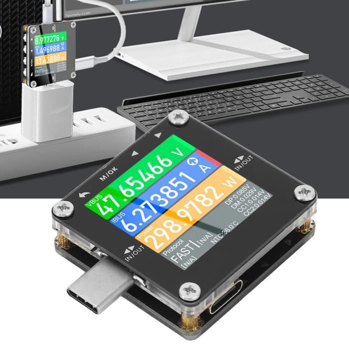 Usb c tester voltímetro de YOJOCK a Compteur Usb Type C Mesure Puissance CENPEK USB C Testeur Compteur Type-C Compteur De Courant 4 Mesure Capacité Batterie Usb C Testeur de Tension, MX18 Testeur USB Compteur d'alimentation USB... Ce testeur USB est conçu pour détecter la tension, le courant, la capacité, la taille électrique, la puissance, la température, la résistance, le temps de charge et d'autres données des appareils USB-C, précision 4 bits pour des mesures plus précises. Minifinker Testeur Compteur De Courant De Tension Usb Numérique... Les testeurs sont souvent utilisés dans les tests de qualité des produits périphériques numériques 3C et sont le premier choix des joueurs numériques et des passionnés d'électronique. Le testeur USB Type-C prend en charge QC2., 0/3., 0PD, VOOC et prend en charge la surveillance des signaux électriques pendant le protocole de charge rapide PD2., 0/3., 0 pour répondre aux besoins des différents utilisateurs de téléphones mobiles.