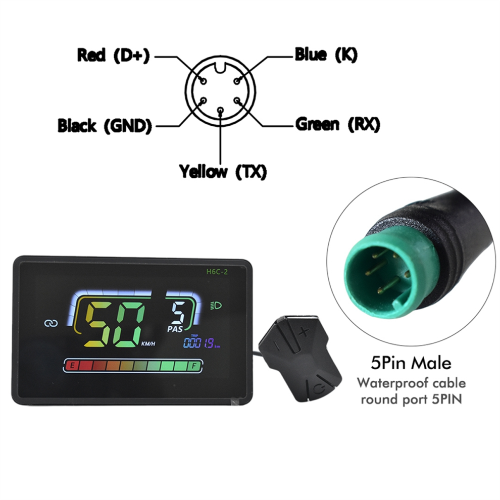 H6C Écran LCD pour vélo électrique, protocole UART n° 2, ordinateur de cyclisme coloré 24 V-60 V 24 V-60 V avec port de charge USB pour appareils mobiles, écran LCD pour enrichir Améliorez votre expérience de cyclisme avec le H6C-2 ordinateur de vélo LCD Bluetooth, un écran Ebike polyvalent compatible avec différents niveaux de tension et doté d'un design étanche pour une fiabilité par tous les temps écran LCD Bluetooth UART Compteur Vélo Bluetooth - Top 10 De 2022 - Comparatif Des Meilleurs Compteur Vitesse Vélo électrique En raison des différents lots, il peut y avoir des différences dans l'apparence du produit, la couleur et le texte imprimé, qui n'affecteront pas l'utilisation. Note: réflexion de lumière et différents écrans peuvent causer la couleur de l'article dans un peu différente de la vraie chose. Compteur de vitesse Bluetooth H6C-2 pour vélo électrique, écran LCD, 5... Spécification : 5 PINCouleur : NoirMatériau : PlastiqueTaille : 71,3 mm x 116,1 mm x 22,8 mmContenu du colis :1 * Compteur d'affichage LCDSeul le paquet ci-dessus, les autres produits ne sont pas inclus. L'erreur de mesure permis est de +/- 1-3 cm. Fonction : indicateur de batterie ; commande des phares ; fonction boost ; changement de vitesse ; affichage de la vitesse ; kilométrage partiel ; kilométrage total ; durée de fonctionnement ; conversion métrique-impériale ; message d'erreur Taille du support applicable : 22,2 mm/25,4 mm/28,6 mm/31,8 mm