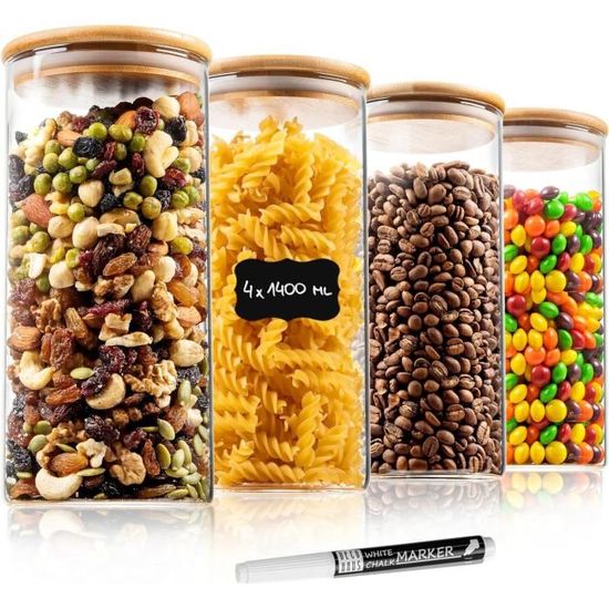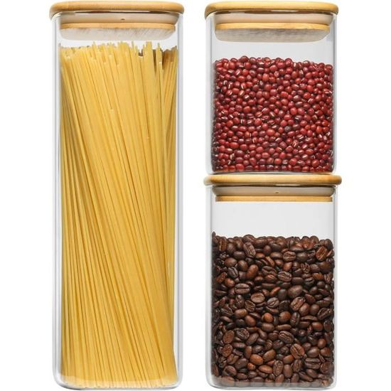 Bocal En Verre Hermétique Comptoir De Famille Bocal De Rangement En Verre De 2 L Avec Couvercle – Bocaux Empilables Et Emboîtables Hermétiques – Récipient De Stockage Durable Pour Aliments Secs – Passe Au Lave-vaisselle Bocaux Verre VIELLE TAILLE 2000ml]Une capacité extra haute (2 litres par bocal !) pour les grandes provisions comme les pâtes, les céréales, le riz ou la nourriture pour animaux - Gagne de la place grâce au design empilable 10 Pièces Bocaux Alimentaires Verre 5PCS 250ml + 5PCS 350ml 【Nettoyage & manipulation faciles】Récipient en verre résistant à la chaleur (-20°C à 150°C) et adapté au micro-ondes* / Couvercle en bois avec poignée encastrée pour une ouverture facile (*Retirer le couvercle au préalable). Ces bocaux en verre de 2000 ml sont parfaits pour organiser votre cuisine ! Le lot de 3 vous permet de ranger pâtes, riz, céréales, biscuits ou même des... 【SET DE 2 PIÈCES PRATIQUES AVEC GARANTIE ZUZER】2x bocaux à provisions + 2x couvercles en bois comme système de conservation prêt à l'emploi - Incl. 【PARFAITE ÉTANCHÉITÉ À L'AIR】Grâce à la lèvre d'étanchéité précise du couvercle en bois, vos provisions restent fraîches jusqu'à 3 fois plus longtemps - Idéal pour le café, la farine, les noix ou le thé qui doivent être protégés de l'humidité et de la perte d'arôme. 【VIELLE TAILLE 2000ml】Une capacité extra haute (2 litres par bocal ! Idéal pour les aliments de grande taille comme les pâtes, les céréales, etc.