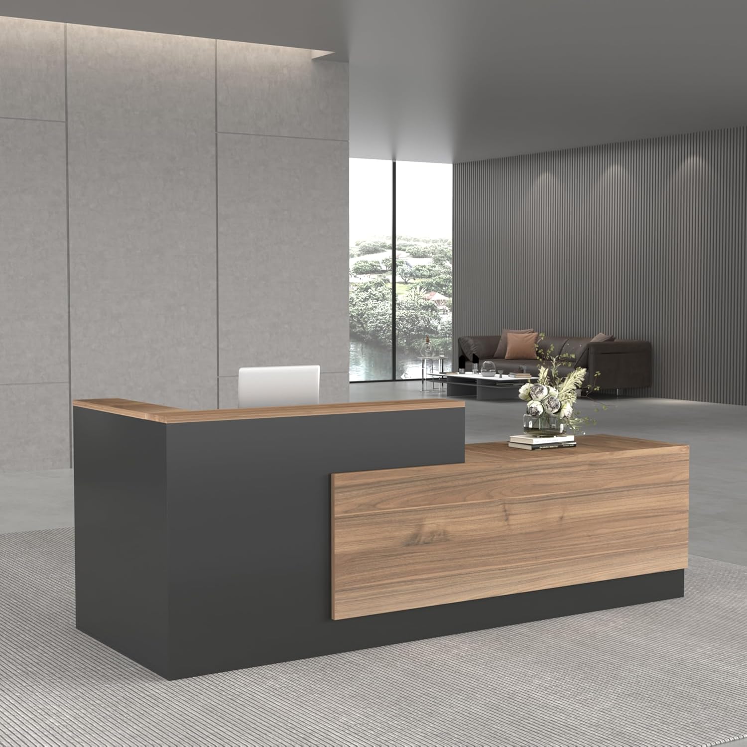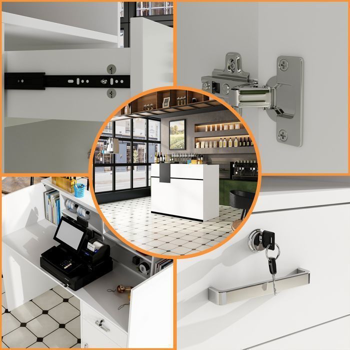 En raison du caractère unique du meuble, les dimensions peuvent présenter un écart de 1 à 3 cm / 0,39 à 1,2 pouces. Petites Réceptions, Comptoirs De Magasins, Caisses Enregistreuses, Comptoirs D'Accueil avec Tiroirs, Mobilier De Bureau, Bureaux, Salons, Magasin De Vêtements, Armoires D'Accueil À Domicile Sa conception à double paroi protège votre intimité et assure la sécurité tout en empêchant la chute de documents importants ou de factures. Pour Salon Coiffure Restaurant Comptoir De Réception, Comptoir Caisse Avec Tiroir Verrouill Bureau D'accueil Avec Led Si vous ne recevez qu'un seul colis, veuillez patienter; les autres arriveront bientôt. Style simple : Ce comptoir d'accueil au design simple et élégant met en valeur l'espace et souligne le professionnalisme et le goût. Le bureau dispose également de 4 compartiments de rangement : le tiroir verrouillable permet de ranger des objets importants et l'armoire permet... Facile à installer : ce comptoir de réception a une structure simple et des instructions d'installation professionnelles sont incluses dans l'emballage for vous aider à terminer l'installation rapidement. Structure robuste et durable : Ce comptoir d'accueil est fabriqué en bois d'ingénierie de haute qualité, offrant une bonne stabilité et une texture robuste et durable. Ce bureau de réception avec comptoir est fini dans une couleur de chêne enchanteresse et forgé à partir de panneaux de particules résilients et d'une structure en fer, améliorant sa stabilité et sa longévité. Le motif à rayures verticales sur la porte inférieure du panneau avant accentue davantage sa couche visuelle Espace de bureau spacieux: ce bureau d'accueil dispose d'un plateau spacieux. Il est un assistant indispensable au quotidien, que vous soyez en magasin ou au bureau. Son panneau épais est imperméable, résistant aux frottements et facile à nettoyer. Nos produits sont avant-gardistes et à la mode dans leur conception, de couleurs vives et de personnalité distinctive, injectant vitalité et dynamisme dans votre pièce. Il est non seulement idéal for recevoir des visiteurs, mais peut également servir de comptoir de vente dans les bureaux, les salons de coiffure et les restaurants.
