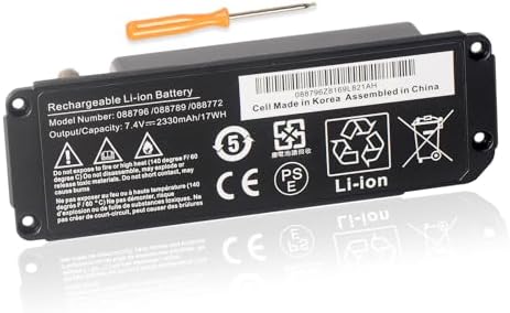 Batterie 7.4V 3.4Ah Li-Ion 088796 pour BOSE Soundlink Mini 2 ▶ Tension: 7,4V | ▶ Capacité: 2200mAh/16,3Wh | ▶ Type de batterie: Li-Ion | ▶ Dimensions: 113,44mm x 38,14mm x 40,88mm | ▶ Poids: 120 g., | ▶ Produit: 100% compatible Batterie Enceinte Bose Batería De Capacidad Extra Compatible Con Bose Modelo 088796, 7,4v, 3400mah/25,2wh, Li-ion Batterie Remplacement Bose 2200mah La batterie remplace Bose 088772, 088789, 088796 pour les enceintes... vhbw Ersatz für Bose 088796, 088789, 088772, 080841 für Lautsprecher...